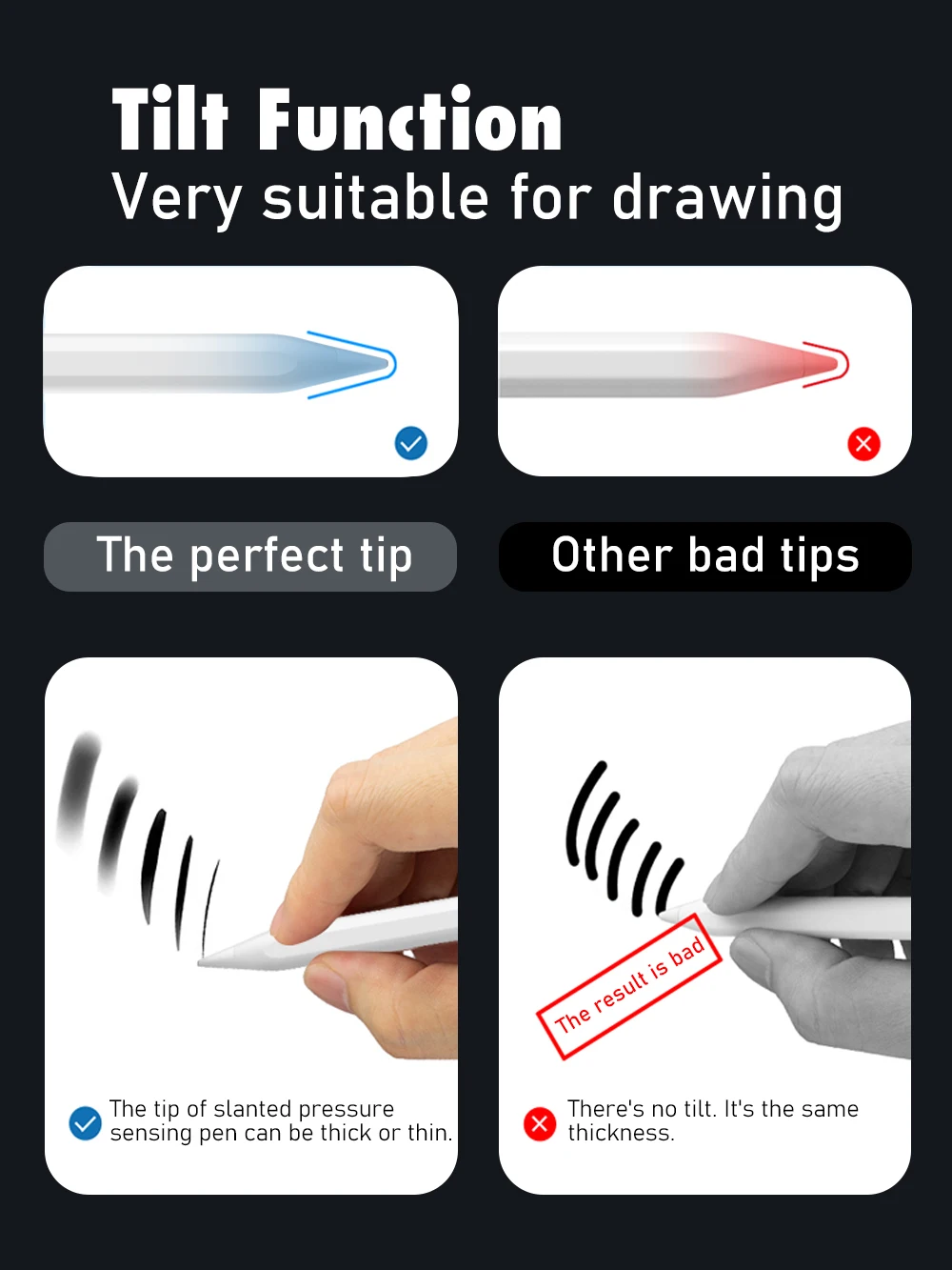 Comprar Para iPad lápiz con rechazo de la palma, lápiz Stylus activo para Apple Pencil 2 iPad 2018 y 2019 6th 7th Gen/Pro 3rd Gen/Mini 5th