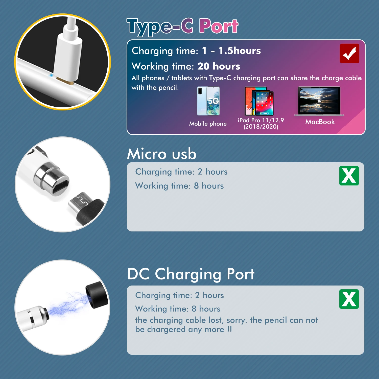 Comprar Para iPad lápiz con rechazo de la palma, lápiz Stylus activo para Apple Pencil 2 iPad 2018 y 2019 6th 7th Gen/Pro 3rd Gen/Mini 5th