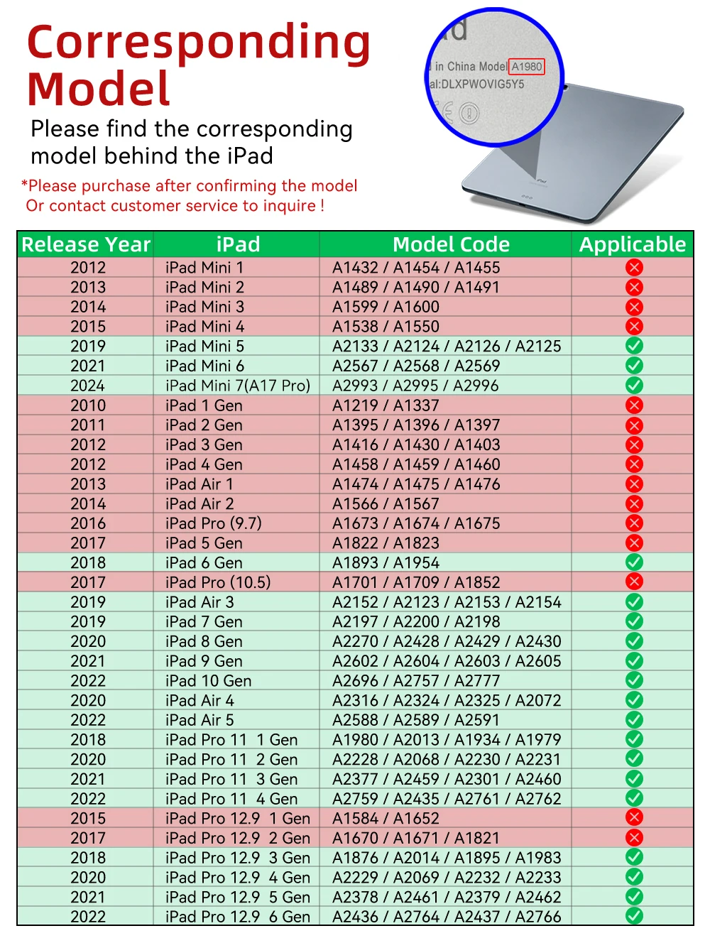 ¡Este lápiz óptico solo se aplica al iPad 2018-2024, no a otras series y marcas!!