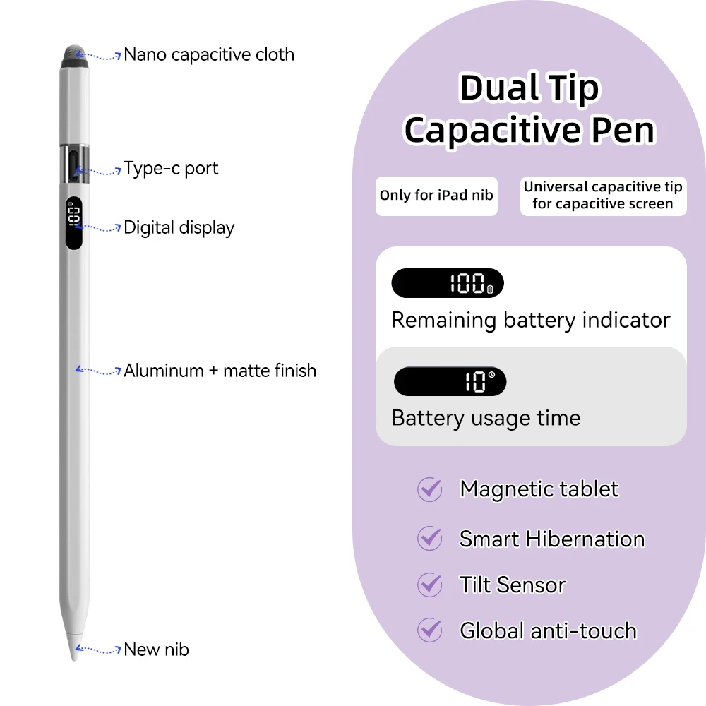 Bolígrafo capacitivo de doble punta: solo para punta de iPad; punta capacitiva universal para pantalla capacitiva