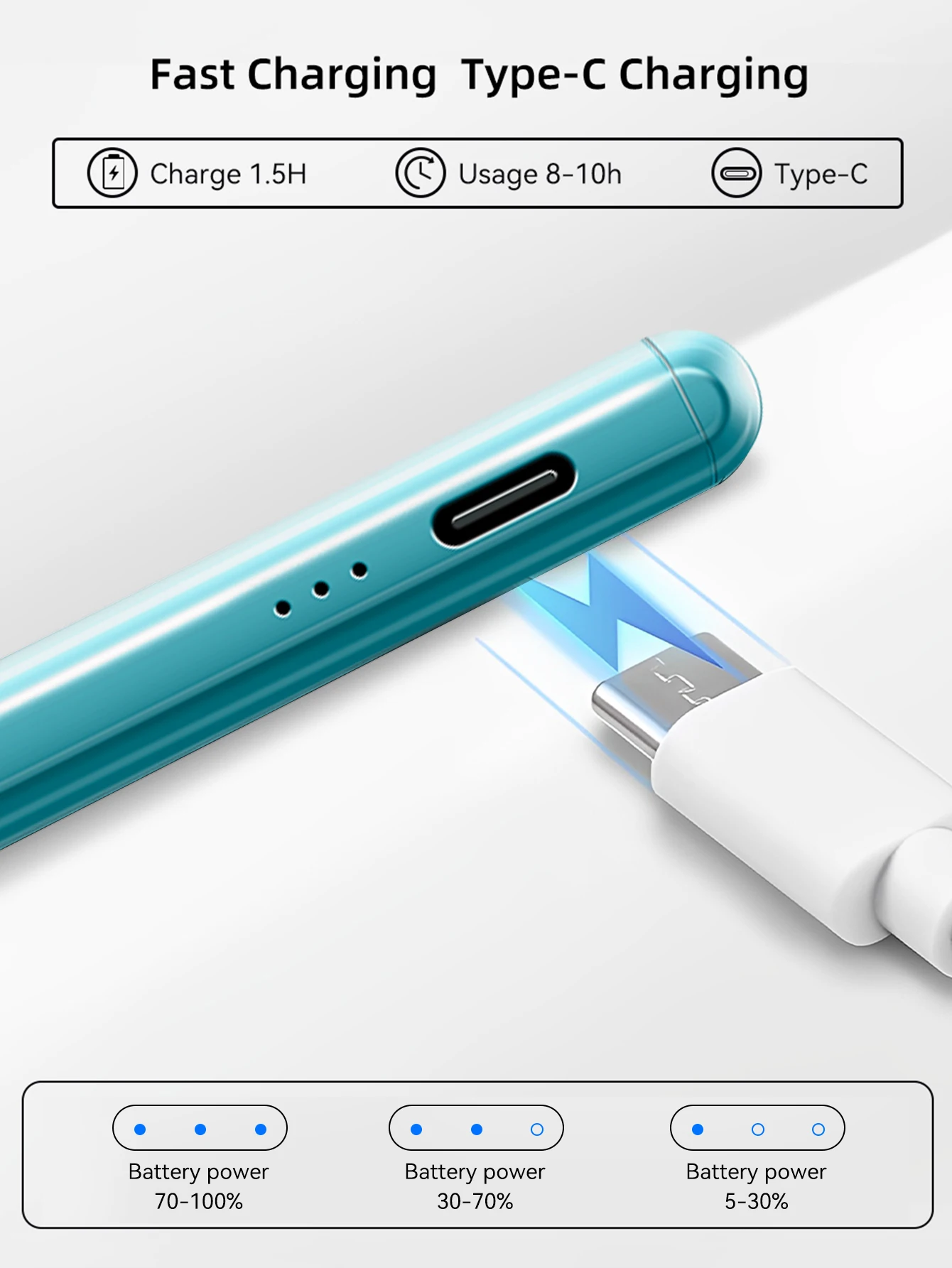 3. Indicador de carga: durante la carga, el indicador se ilumina en azul según la alimentación y las cuatro luces se vuelven azules cuando están completamente cargadas.