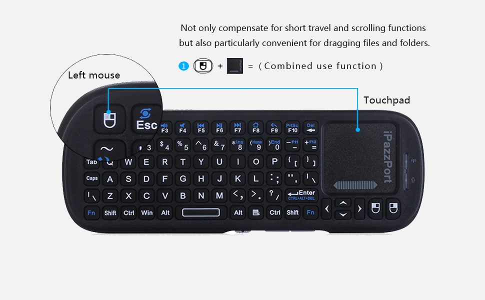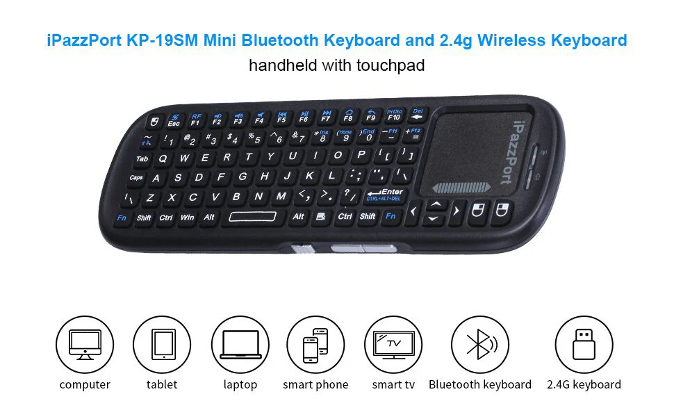 Comprar IPazzPort Mini teclado inalámbrico Bluetooth y 2,4 GHz con panel táctil MouseCombo para Android TV Box/PC/Tablet/PS4/Raspberry Pi 3/HTPC