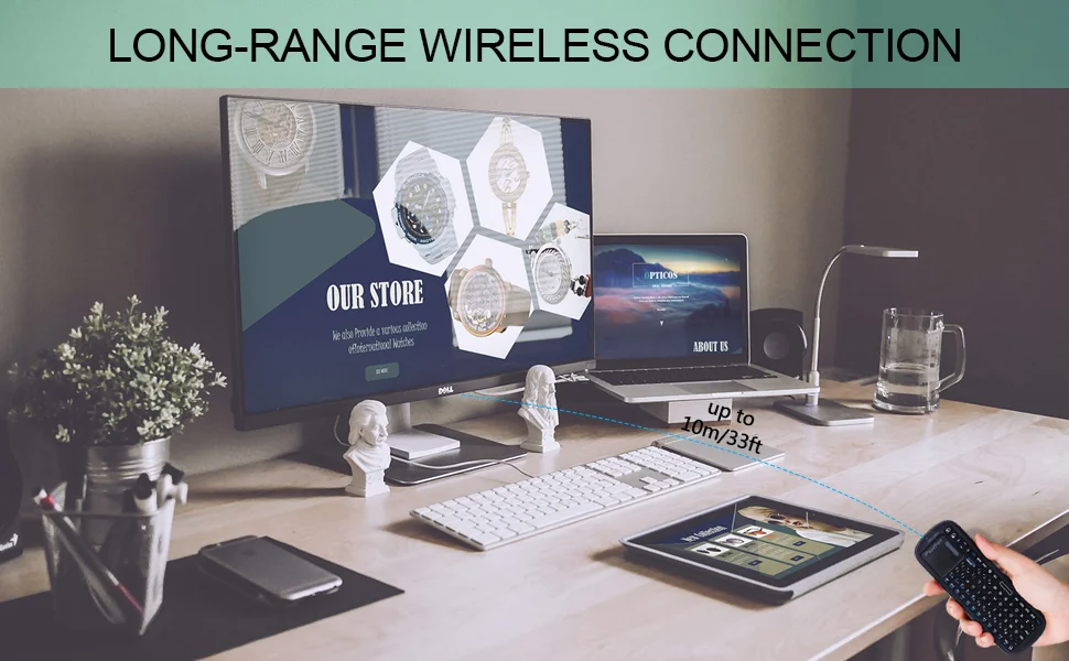 5.[Alcance de uso de 10 metros / 33 pies] El alcance de uso inalámbrico puede alcanzar los 10 metros, tumbarse en el sofá puede controlar el dispositivo perfectamente, es bueno