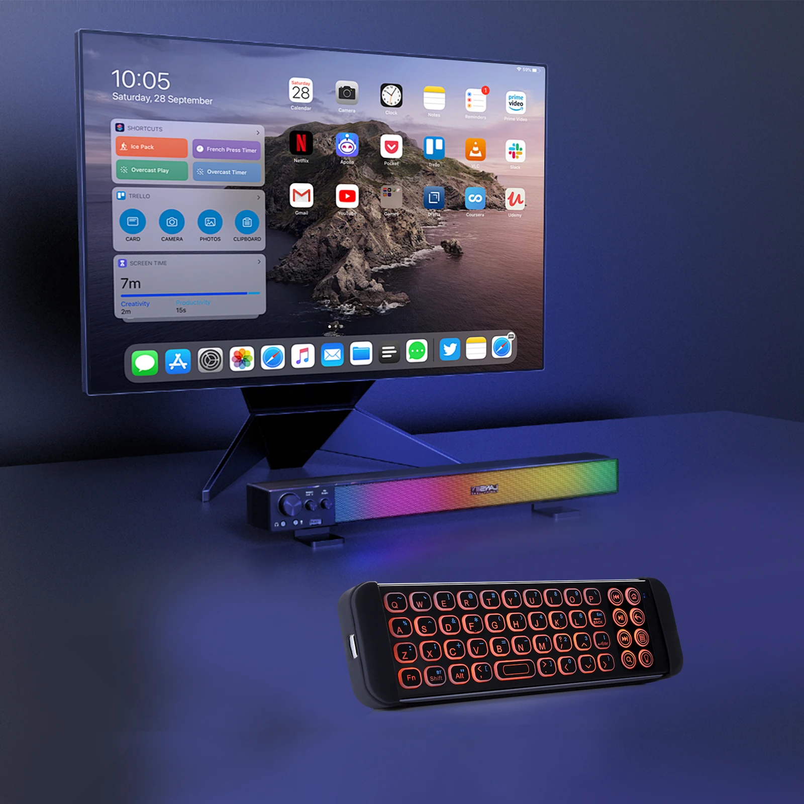 Respaldo suave, este teclado iluminado le permite ingresar de búsquedas fácil y rápidamente, en lugar de cazar con el track pad del antiguo control remoto, sin perder más tiempo.