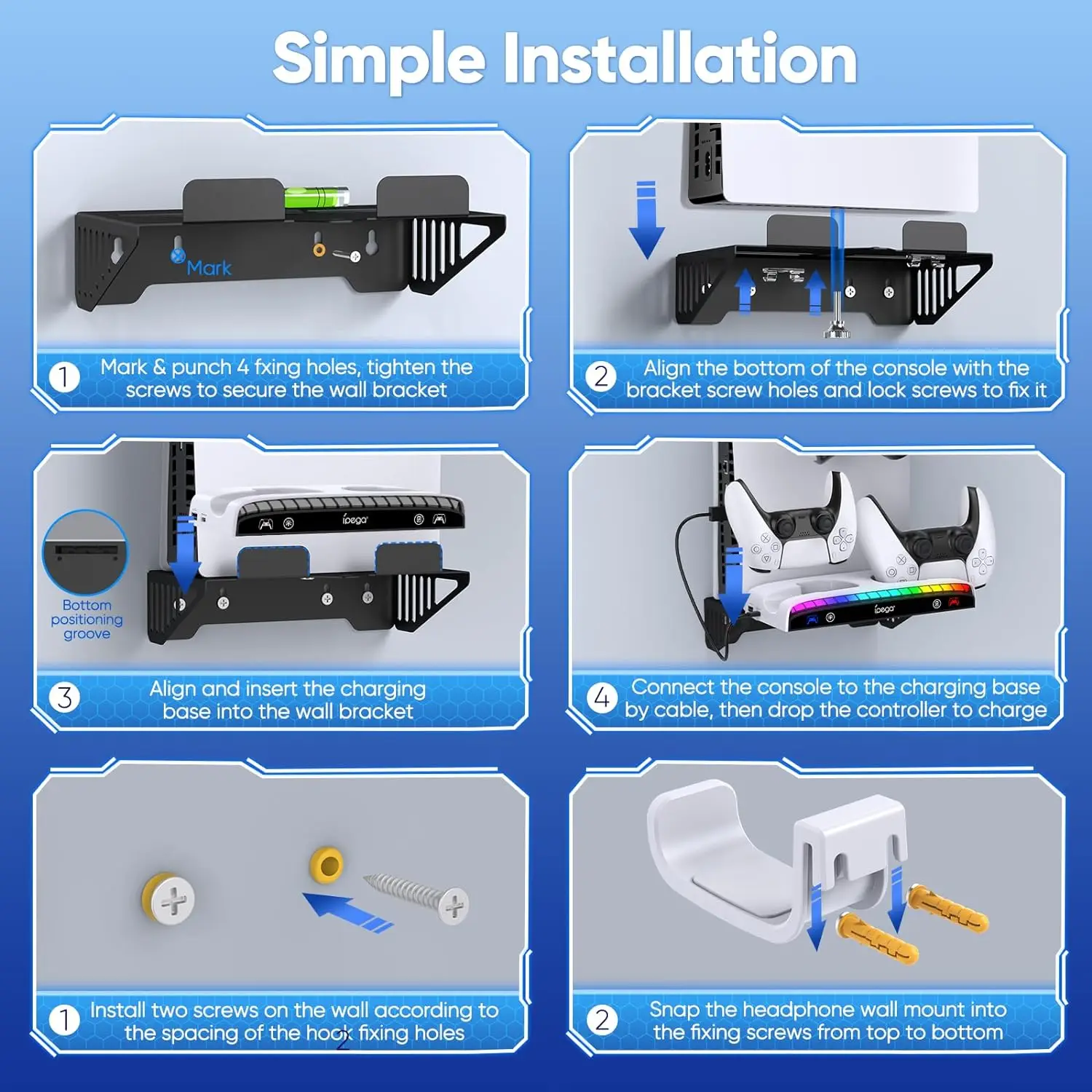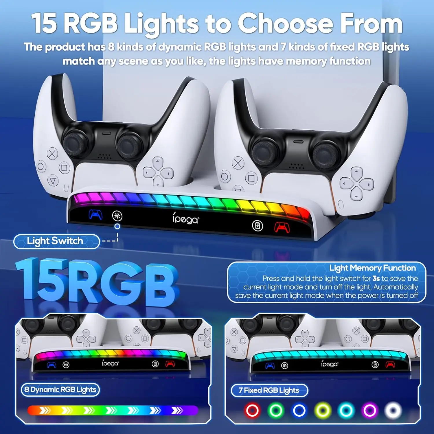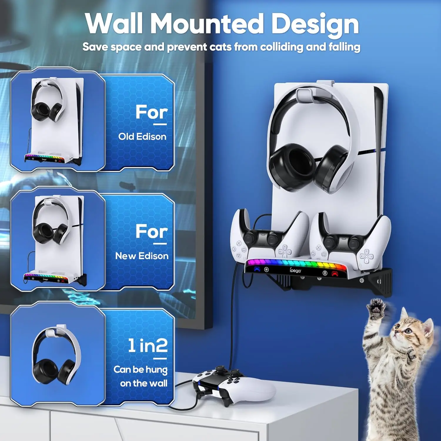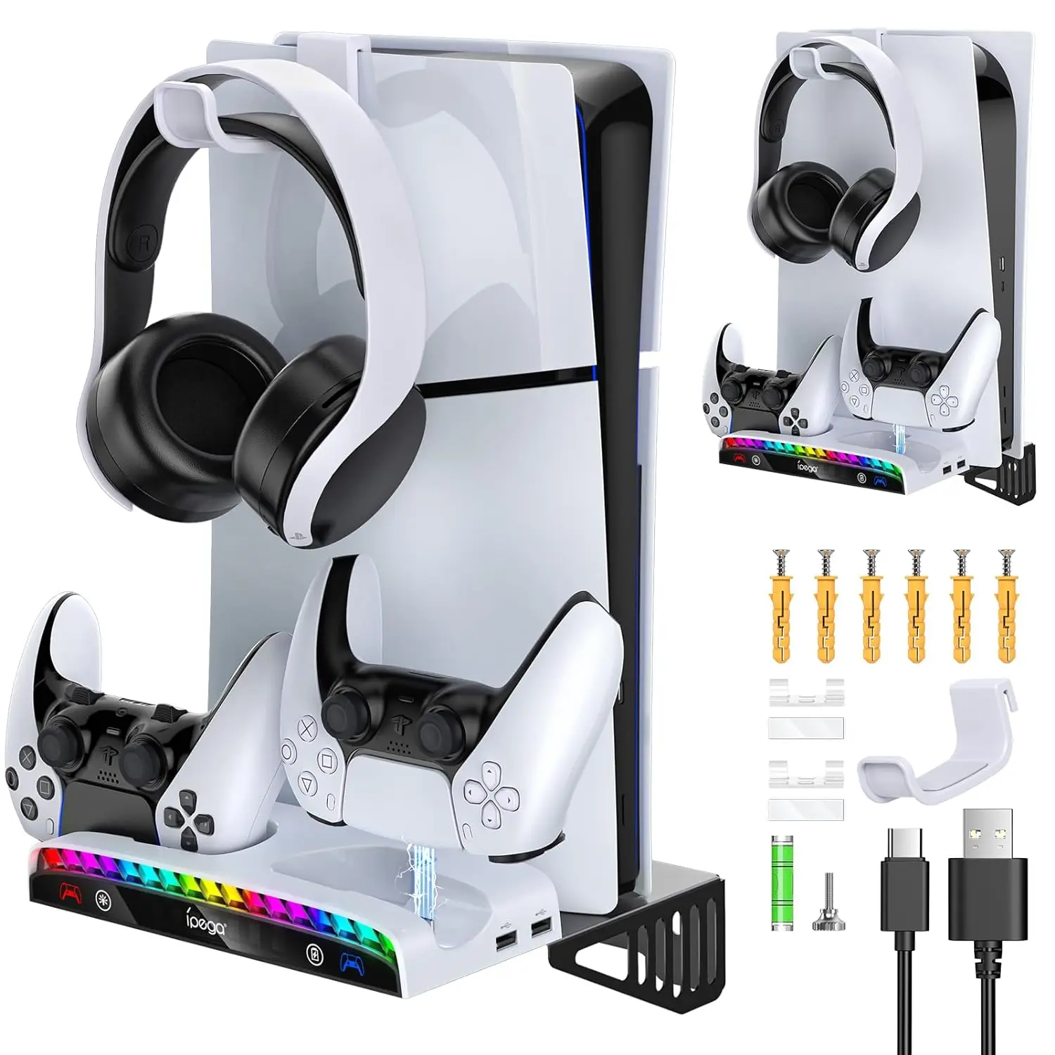 Comprar IPEGA PS5 Slim Console Base de carga de montaje en pared multifuncional para consola PS5 con luz RGB PG-P5S011