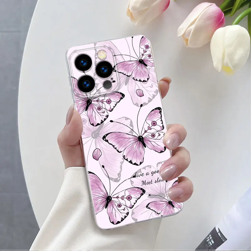 Para iPhone 14 13 Pro Max 14 Plus funda de teléfono de lujo para iPhone 13 14 Pro 13 Mini flor funda protectora de silicona suave transparente