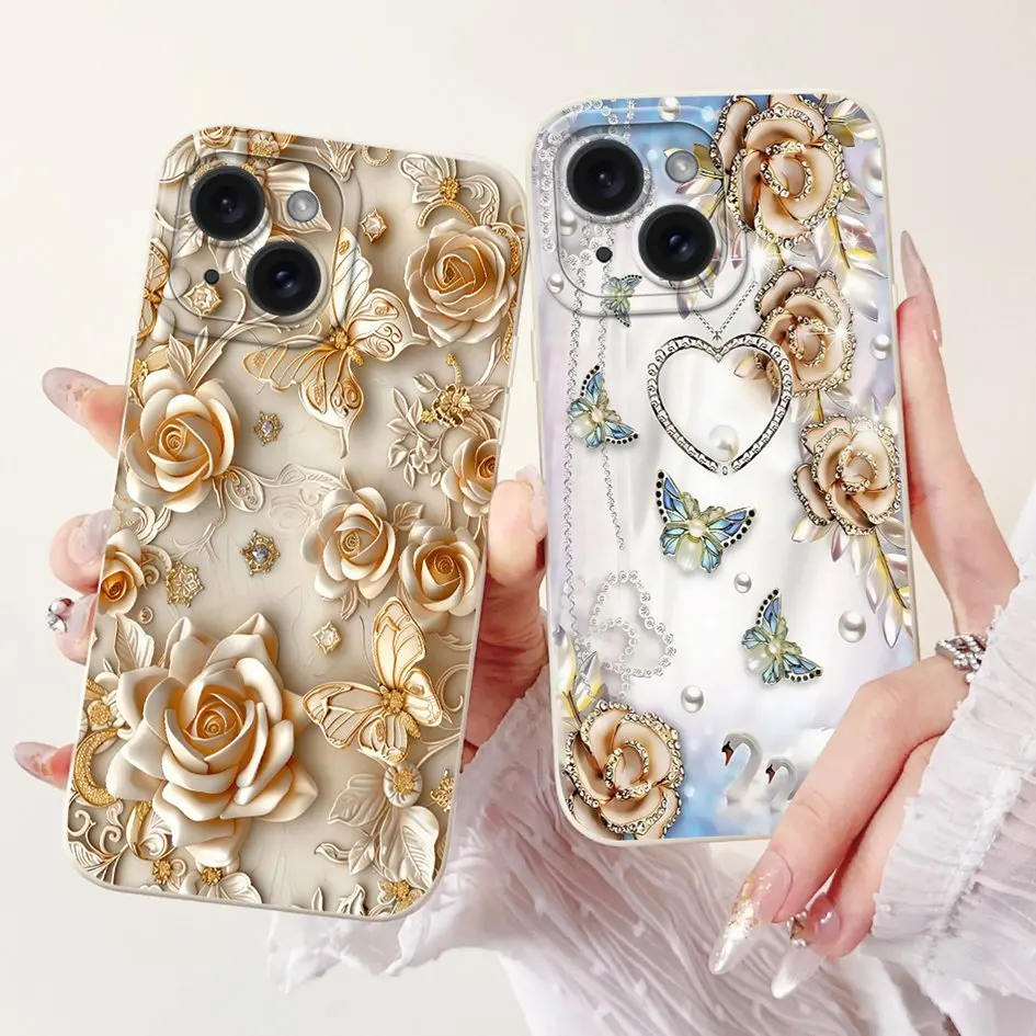 Comprar Para iPhone 14 A2882 funda para iPhone 14 Plus funda Popular flor Bowknot fundas de silicona suave a prueba de golpes para iPhone14 Pro Max bolsa