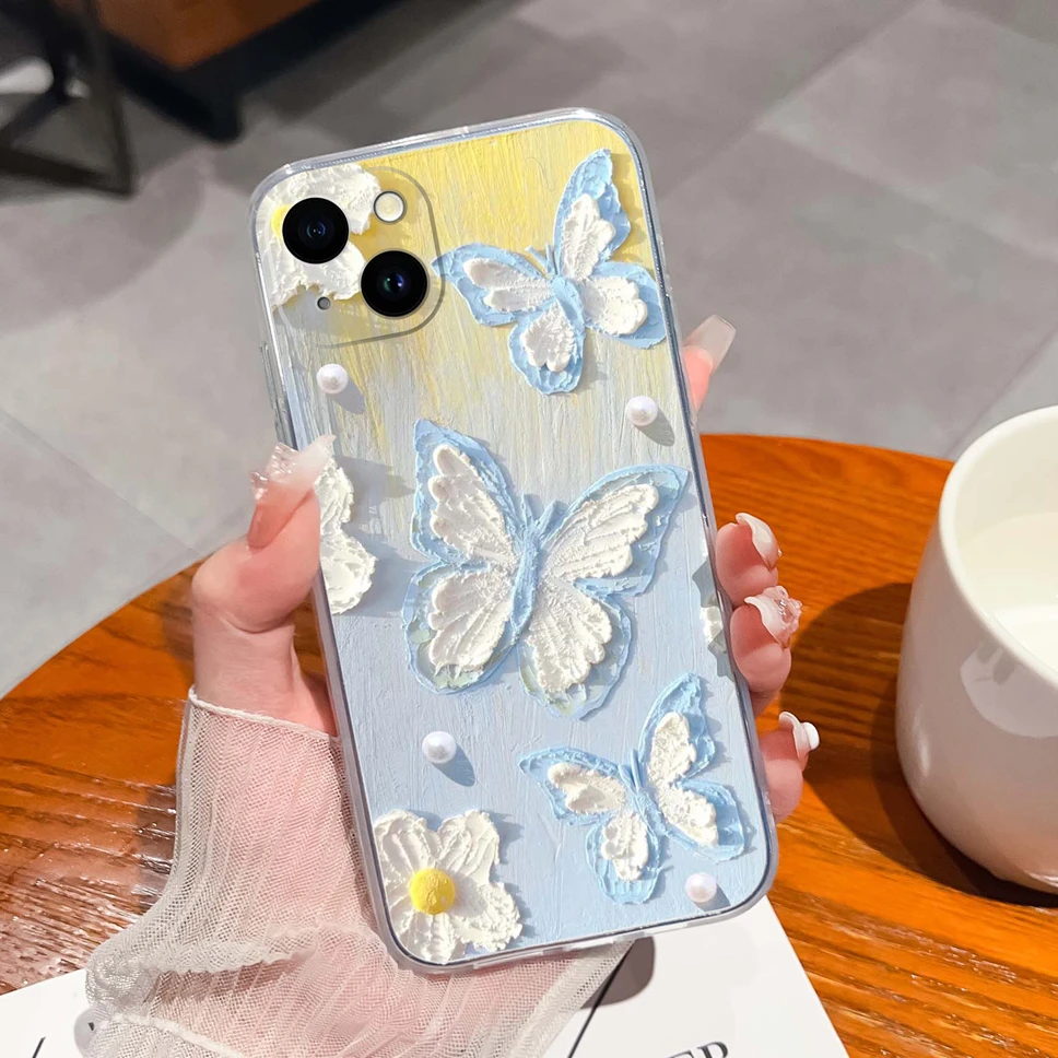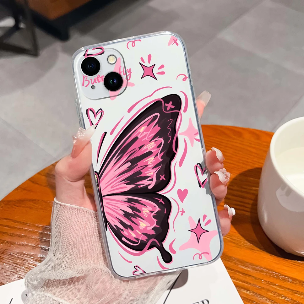 Para iPhone 14 Pro Max 14 Plus Funda de teléfono con patrones de mariposa de ensueño Funda de silicona TPU transparente suave para iPhone14 Funda ligera - imagen 1