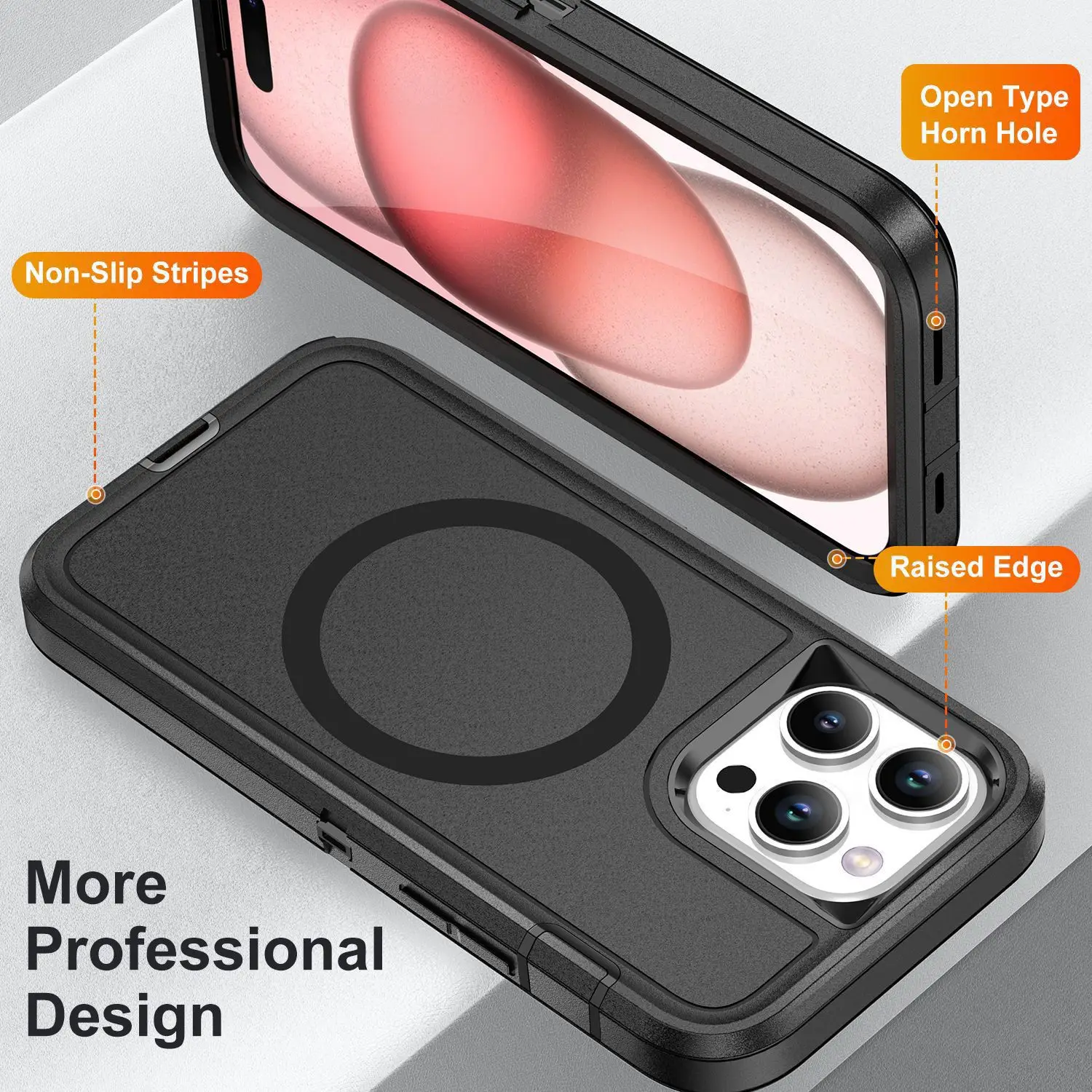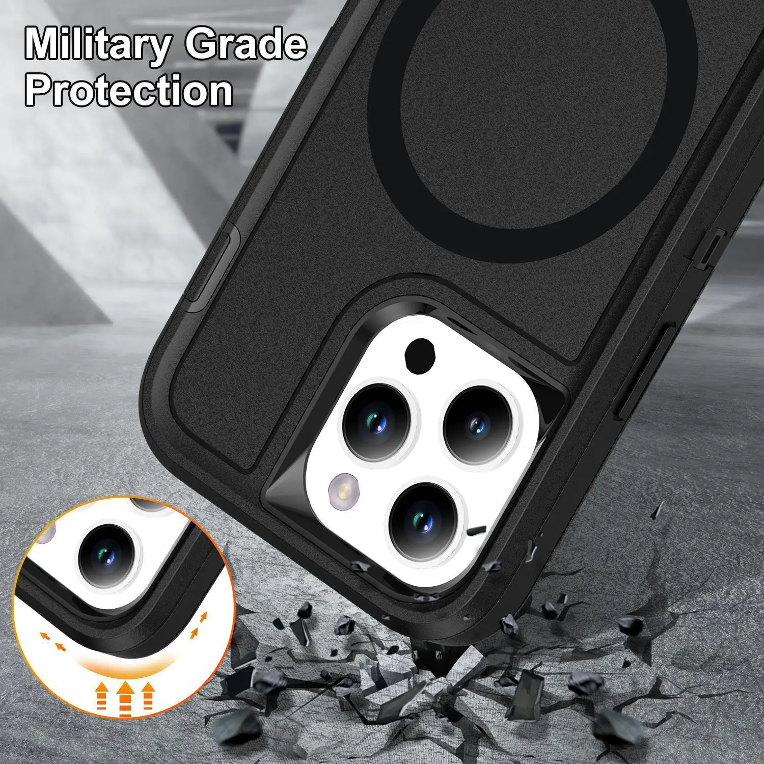 Comprar Para iPhone 15 14 13 16Pro Max 14/15PLUS 3 en 1 nivel militar resistente a prueba de golpes para Magsafe funda de carga inalámbrica magnética