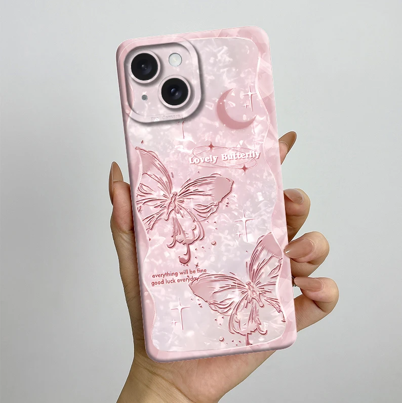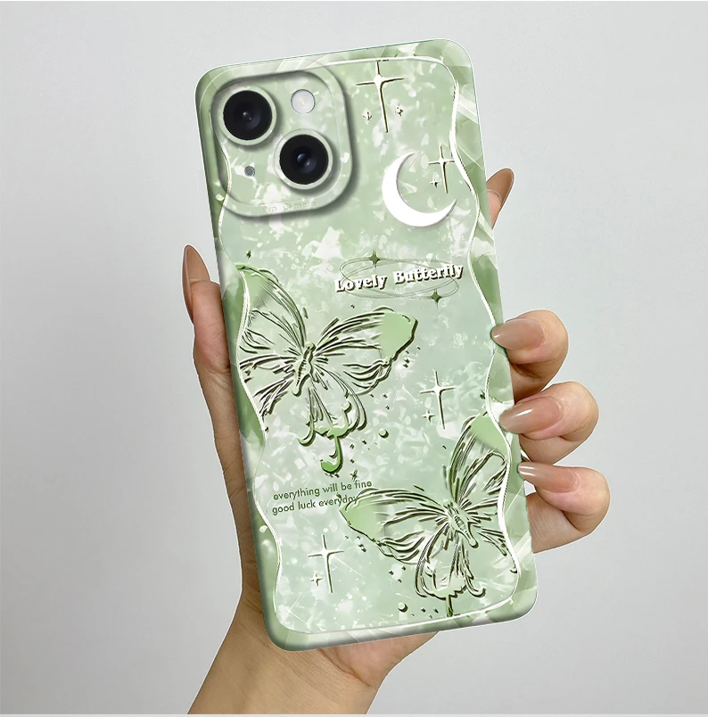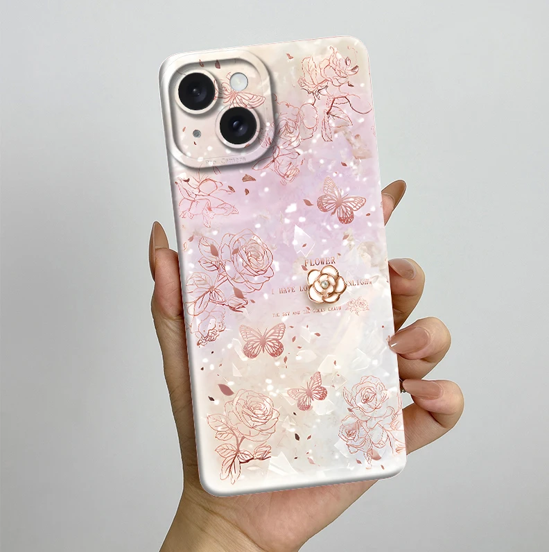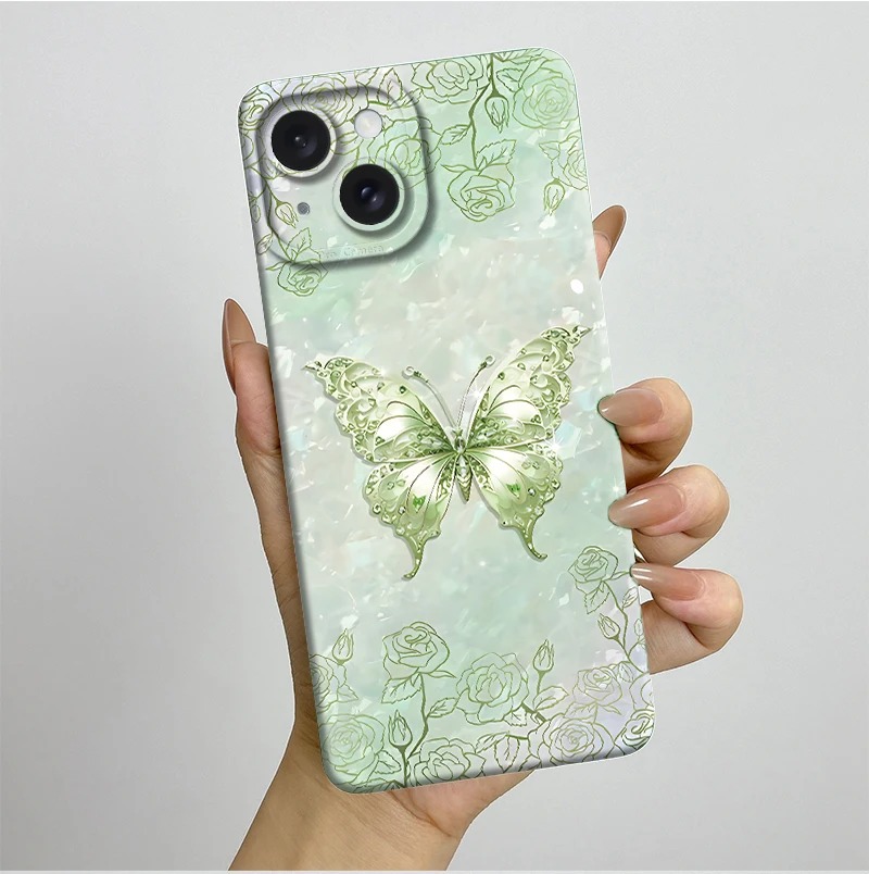 Comprar Para iPhone 15 / iPhone 15 Plus carcasa bonita mariposa flores a prueba de golpes silicona suave TPU contraportada para Apple iPhone15 funda