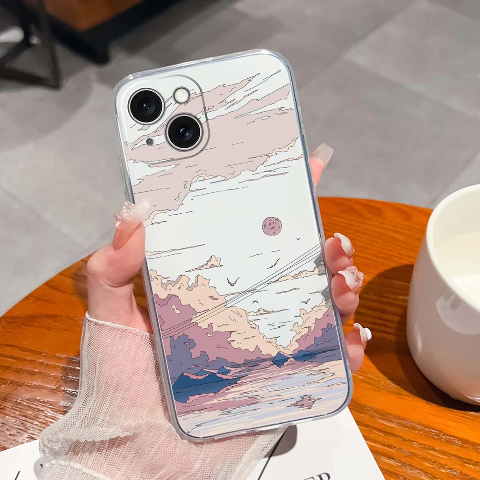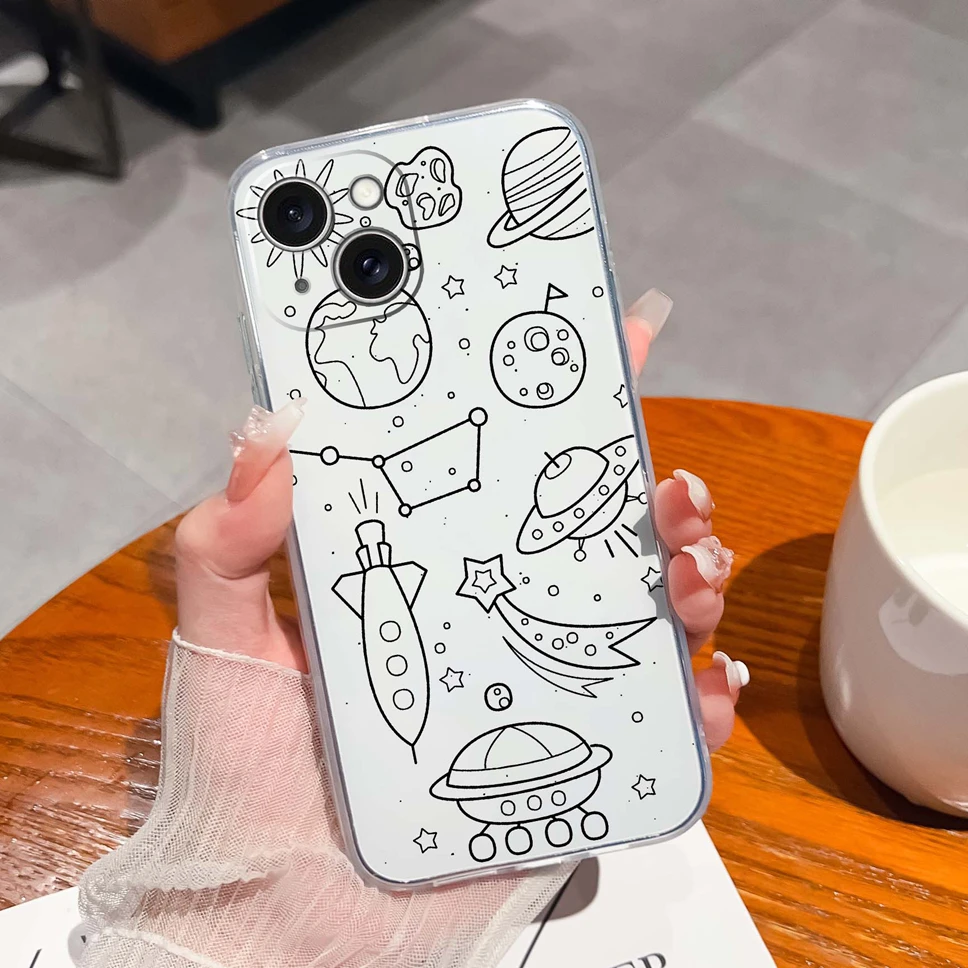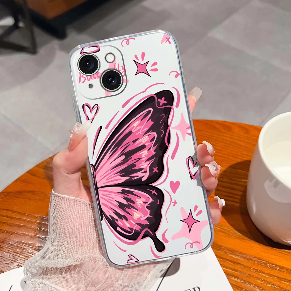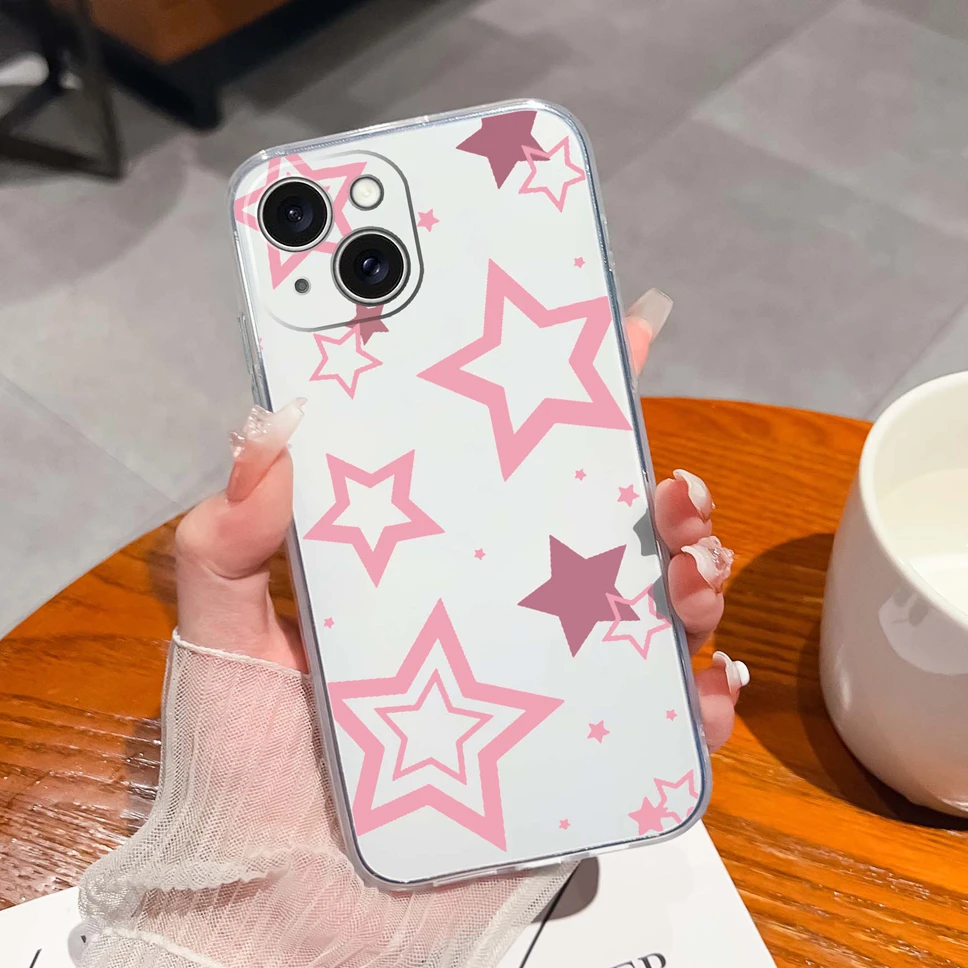 Para iPhone 15 Plus 15 Pro Max funda de moda estilo estético suave TPU cubierta de teléfono de silicona transparente para iPhone15 carcasa ligera
