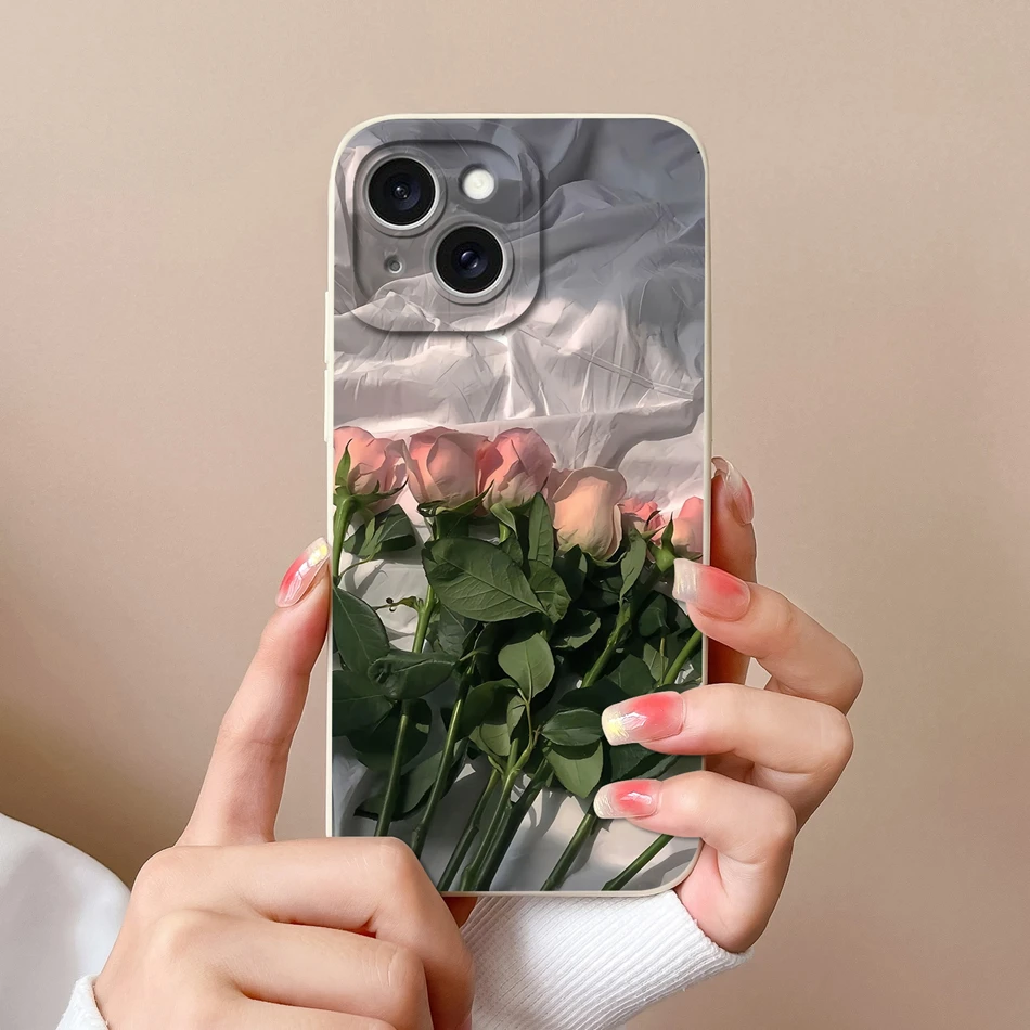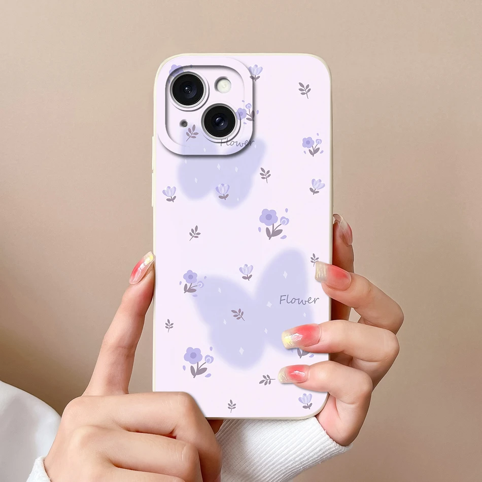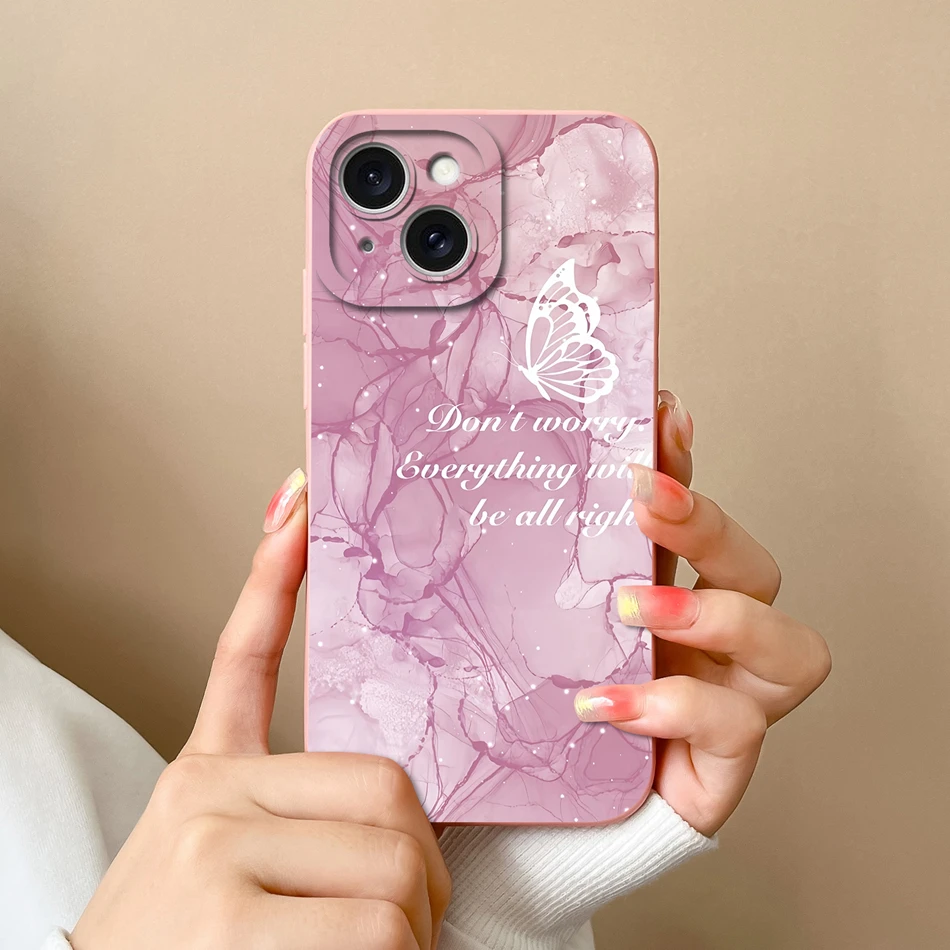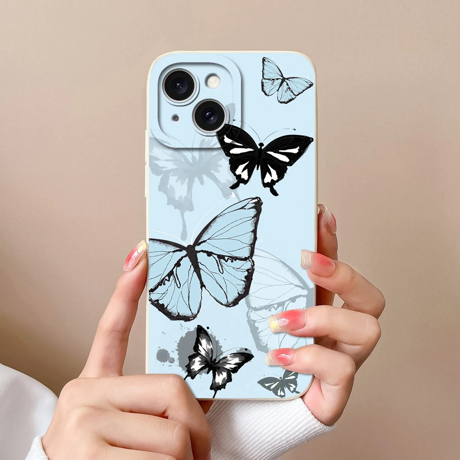 Comprar Para iPhone 15 Plus Pro Max funda de teléfono Rosa-mariposa protección completa contraportada para iPhone15 15Pro 15 + parachoques anticaída suave