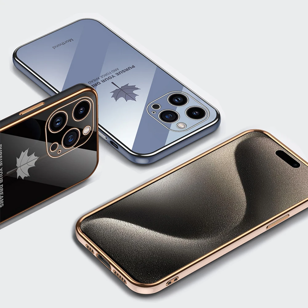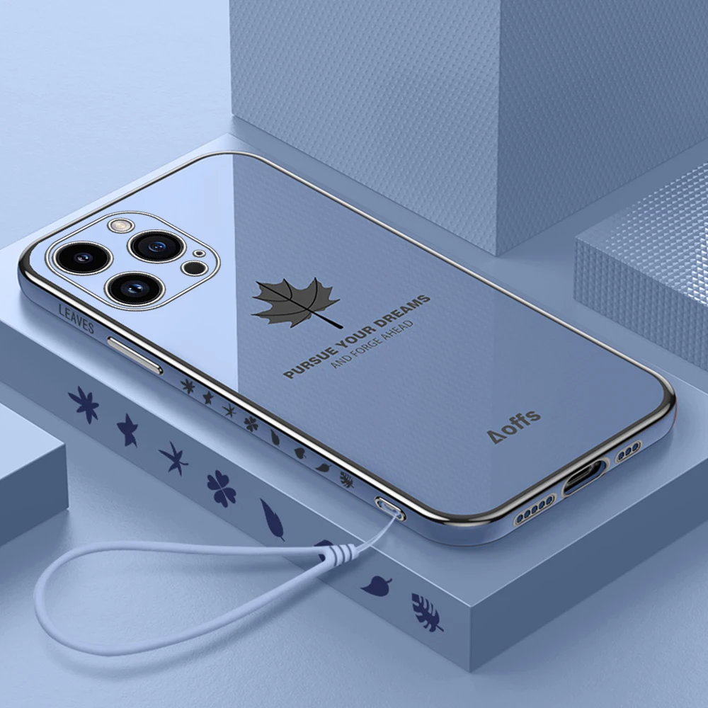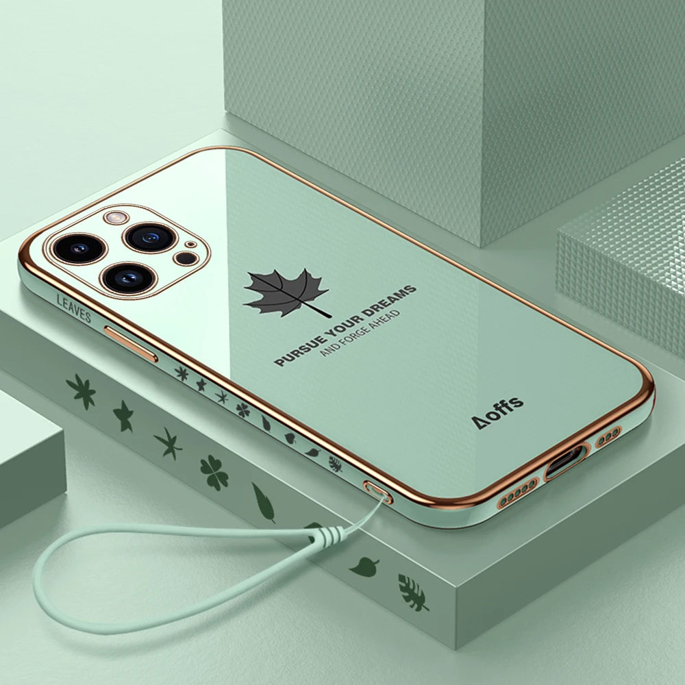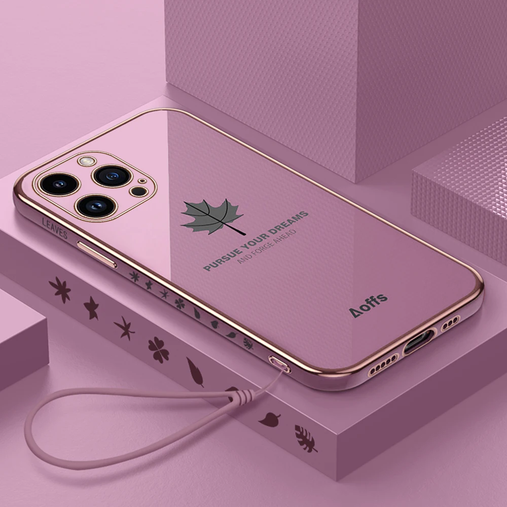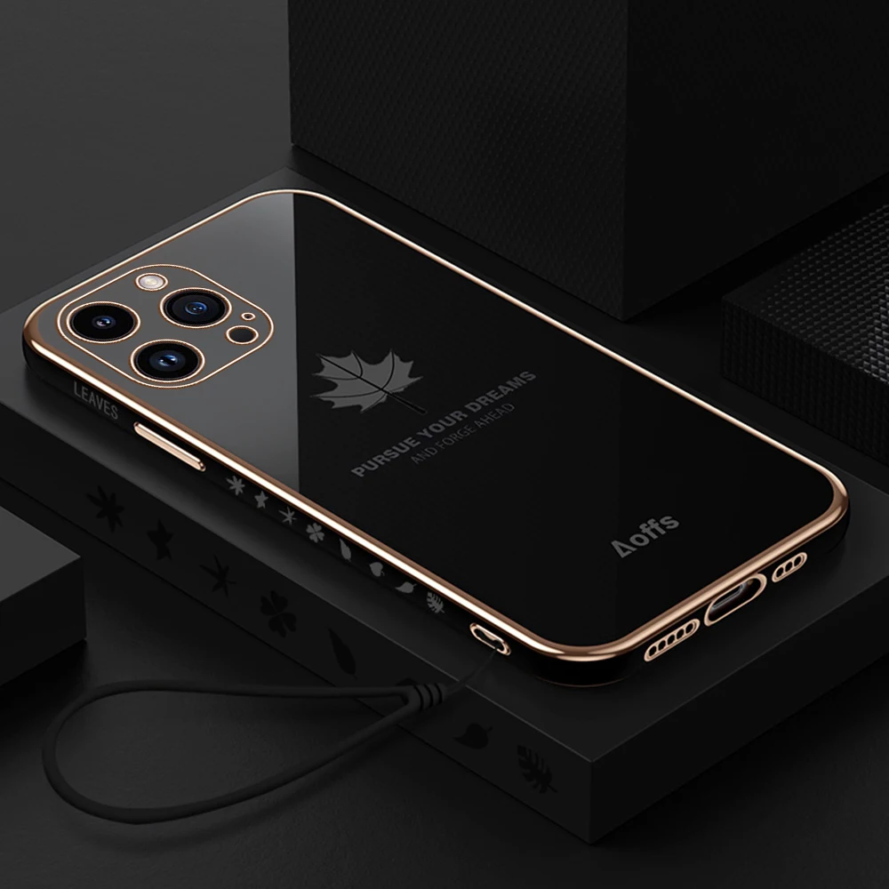 Comprar Iphone 15 Pro Max Plus funda con cordón, cubierta suave de TPU, hoja de arce chapada, 5G, protección de cámara