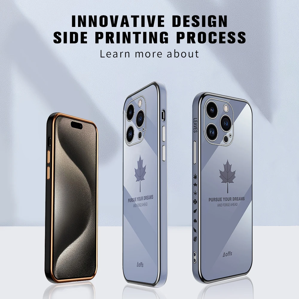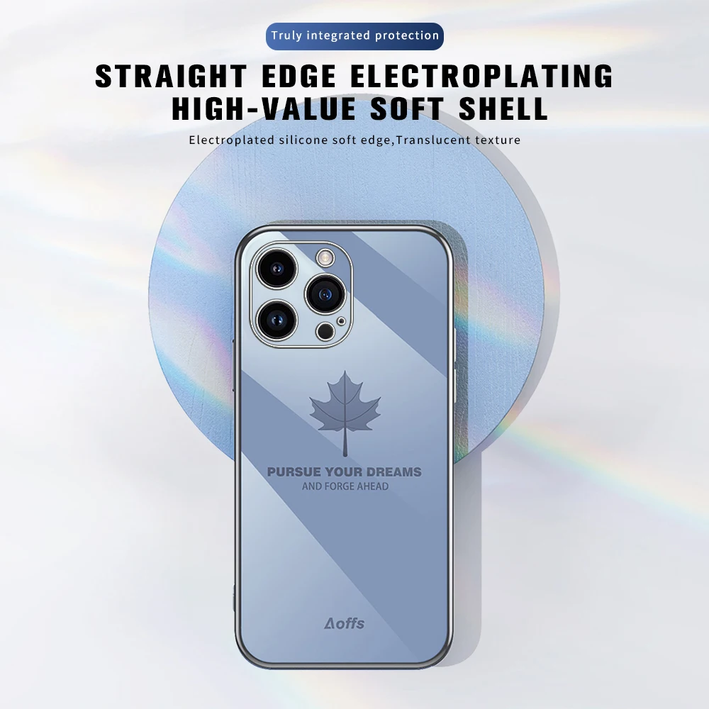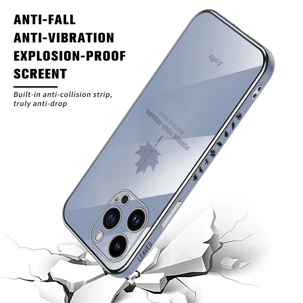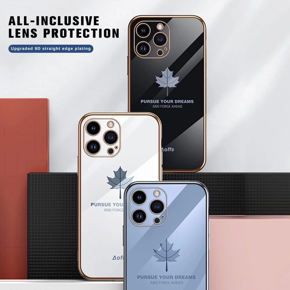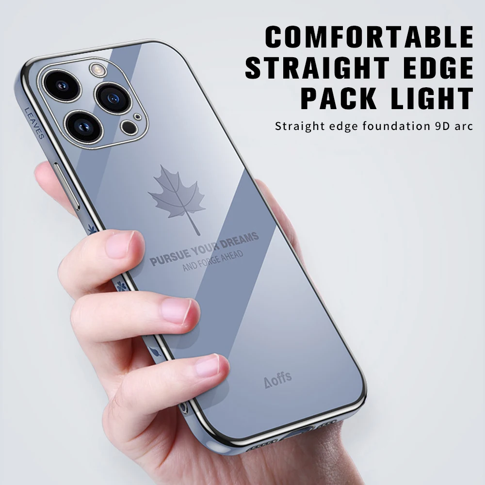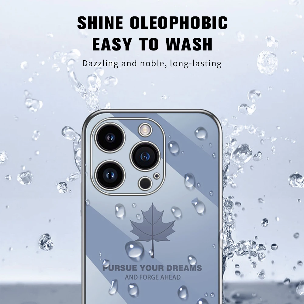 Comprar Iphone 15 Pro Max Plus funda con cordón, cubierta suave de TPU, hoja de arce chapada, 5G, protección de cámara