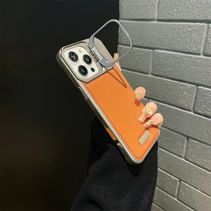 Comprar Para iPhone 16 11 12 13 14 15 Pro Max Plus MagSafe funda de teléfono magnética de cuero liso sin marco soporte de lente de aleación cubierta a prueba de golpes