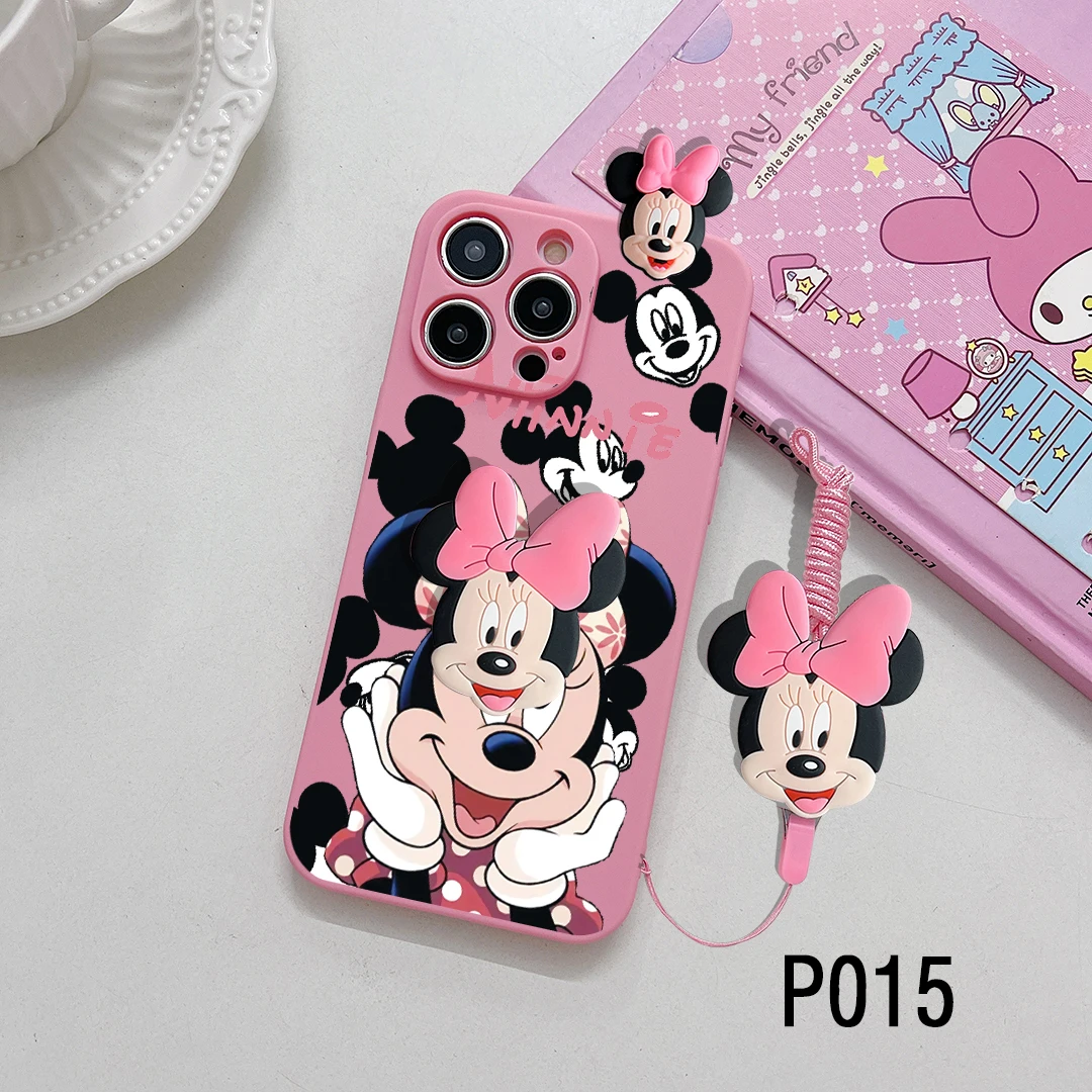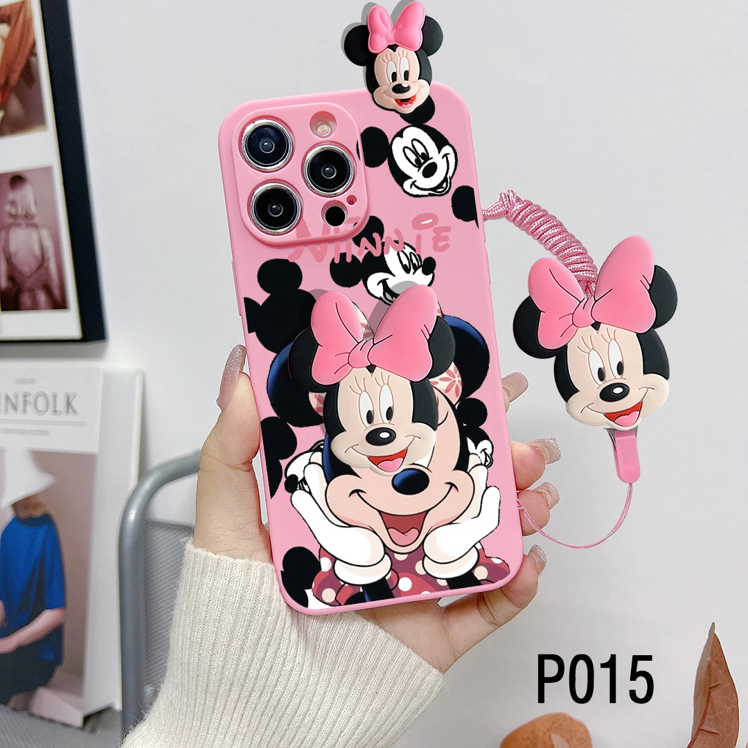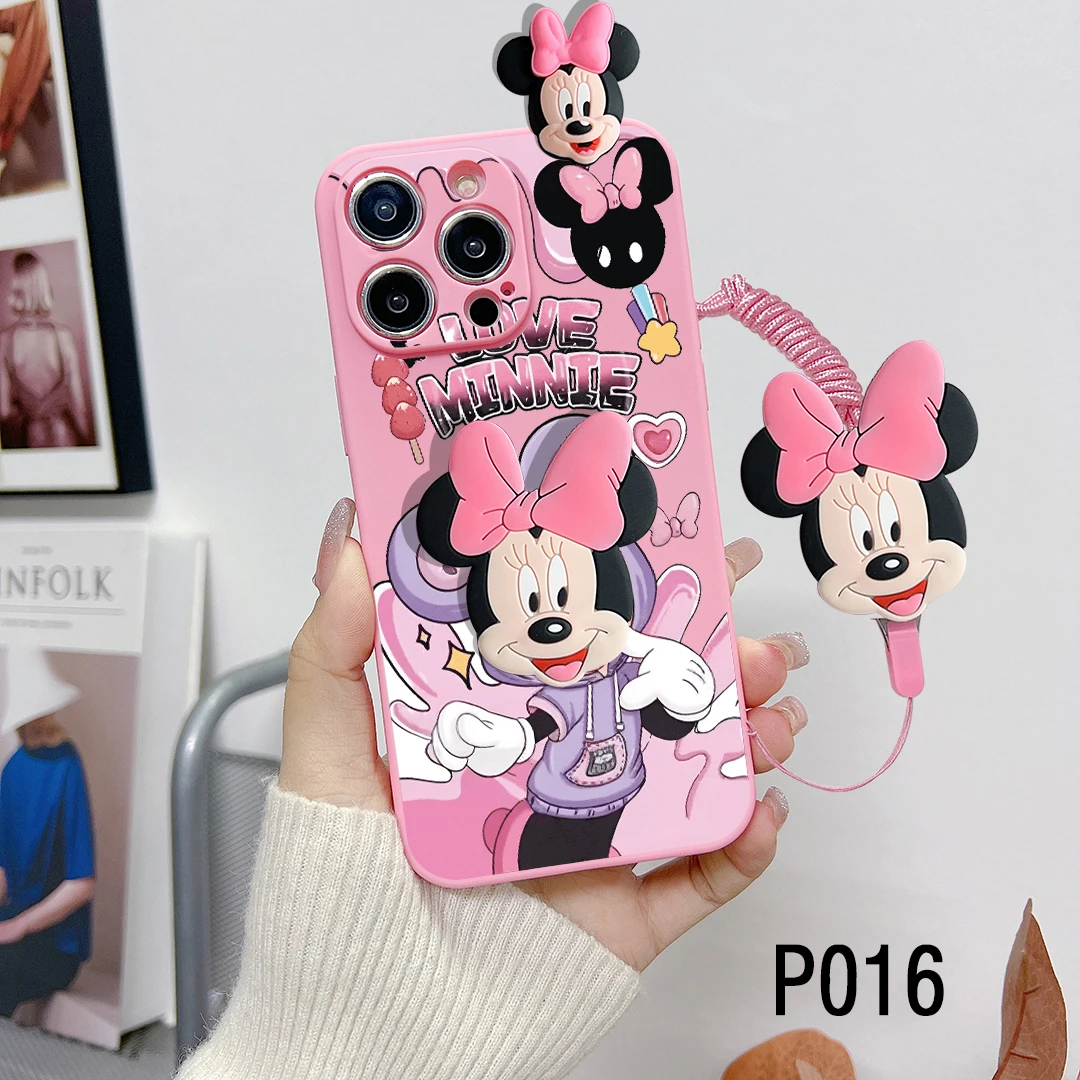Para iPhone 16 15 14 13 12 11 XR Xs 8 7 6 Pro Max mini Plus Funda Minnie con capucha y cuerda de soporte