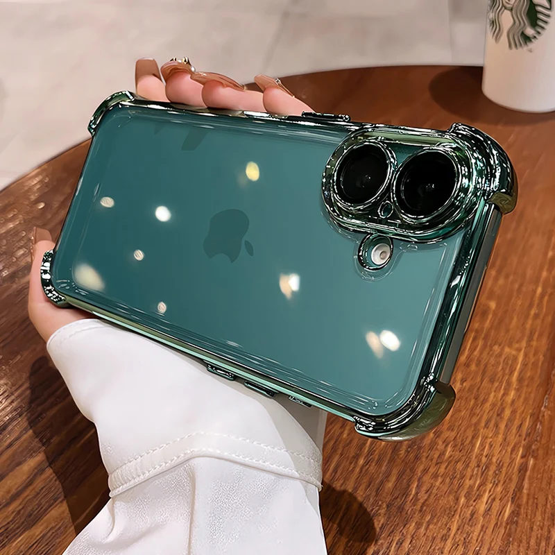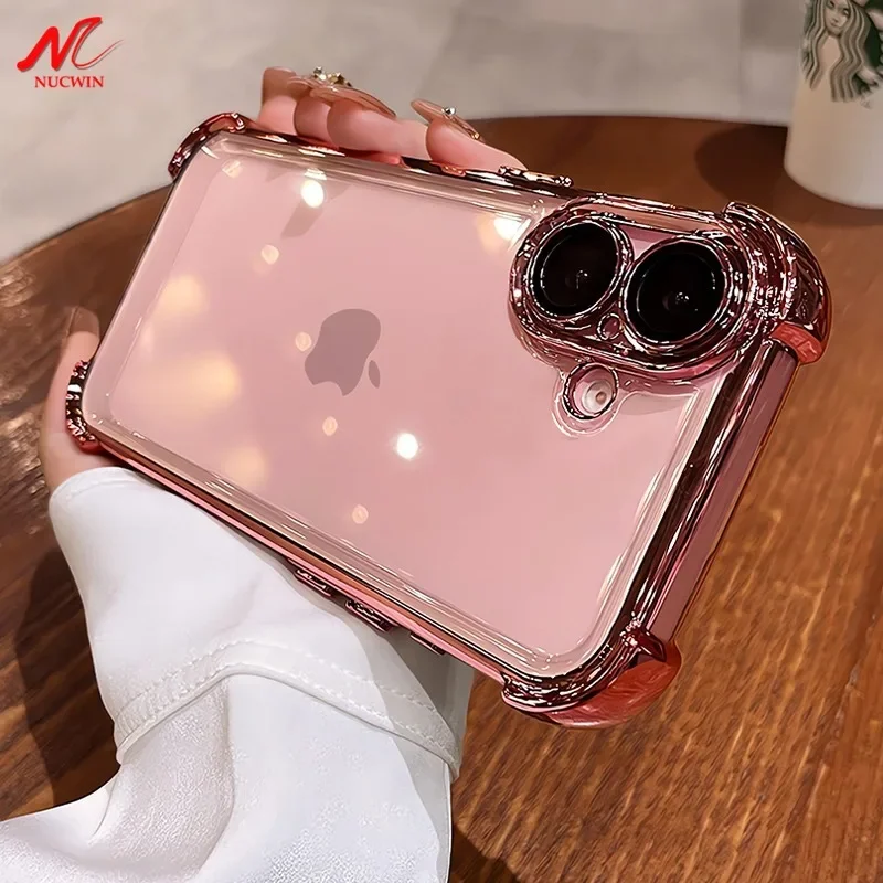 Comprar Para iPhone 16 Pro funda blanda revestimiento de lujo funda protectora de cámara de Airbag transparente para iPhone 11 12 13 14 15 Pro Max 16 Plus X Xs Xr