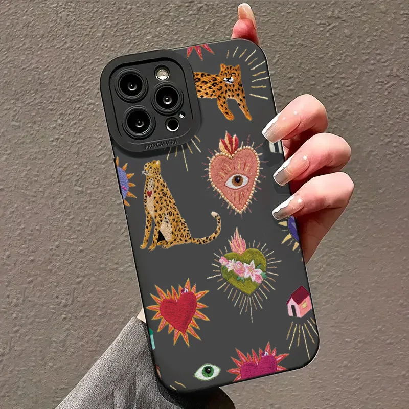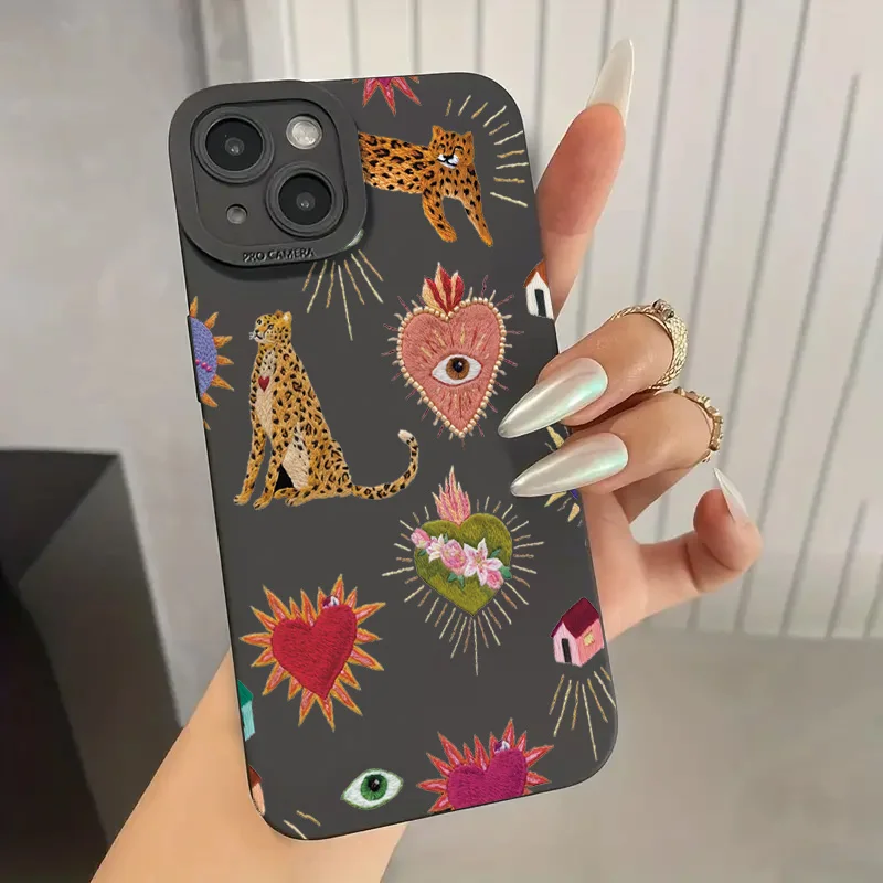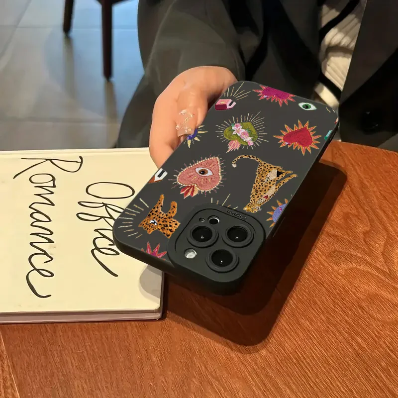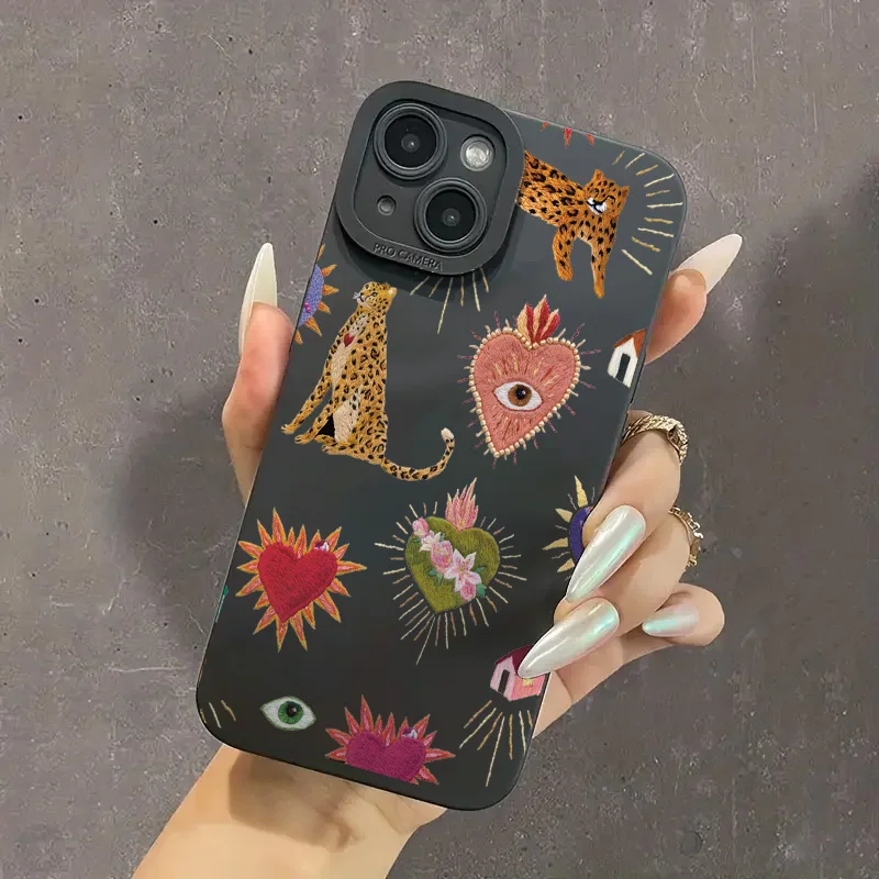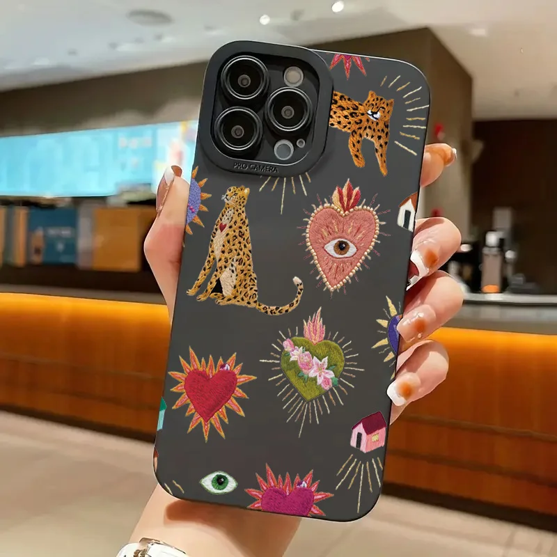Así se ve la funda puesta en el iPhone 17, está bien para el precio pero no me gusta demasiado como se ve cubierto el módulo de cámaras, la funda en los laterales es un poco finita, los dibujos están bien tienen la textura diferente y son brillantes.