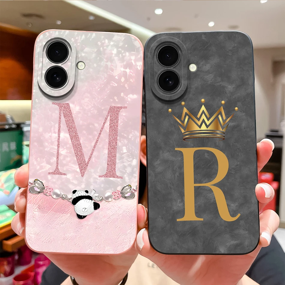 Comprar Para iPhone 16 Pro Max Funda Nombre Letras Funda Suave Alta Calidad Silicona Líquida Pareja Fundas Para iPhone16 Plus Funda Trasera Del Teléfono