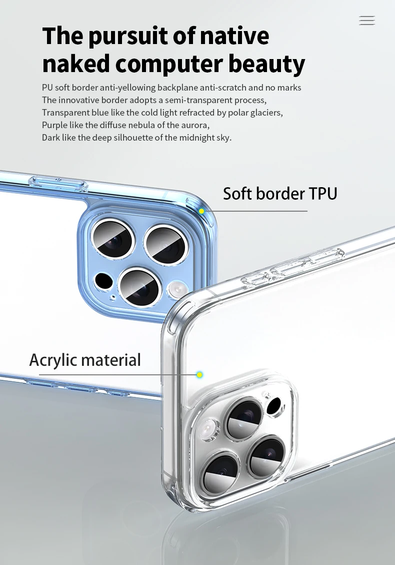 Para iPhone 16e se4 16 Pro Max funda 15 Plus 5G cubierta TPU borde acrílico Backplane fundas protectoras para iPhone 15 Pro Max