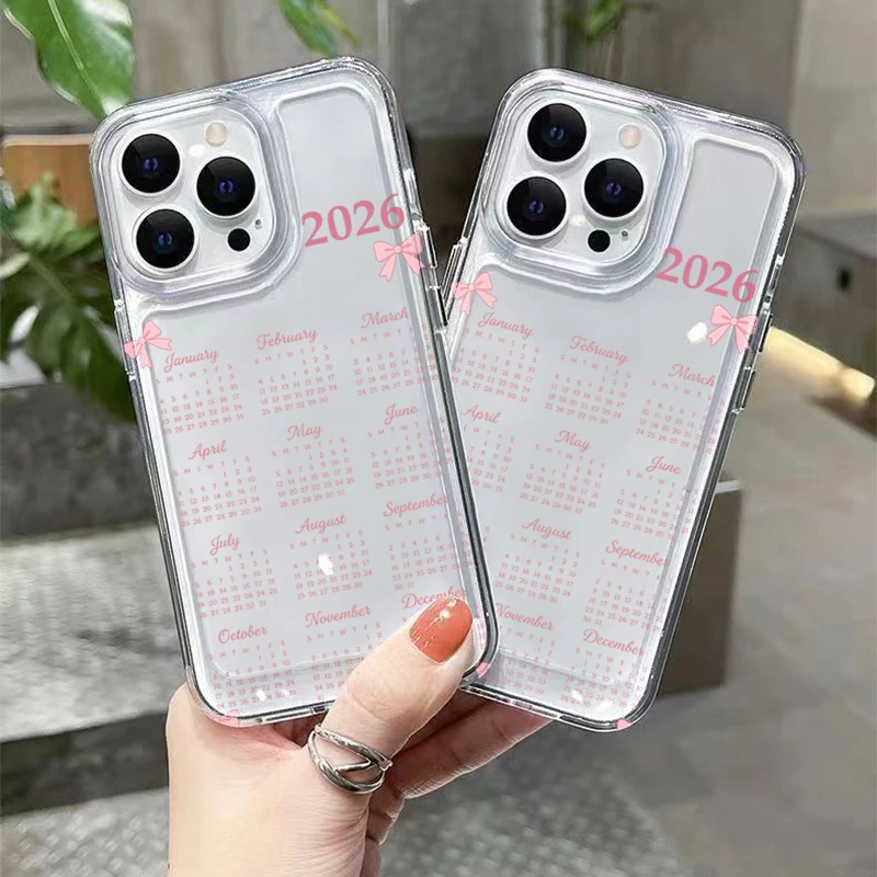 Para iPhone 17 16 15 14 13 12 11 Pro Max Air Funda 2026 Funda con calendario de Año Nuevo para iPhone XS Max XR X XS 7 8 Plus 16E Funda suave