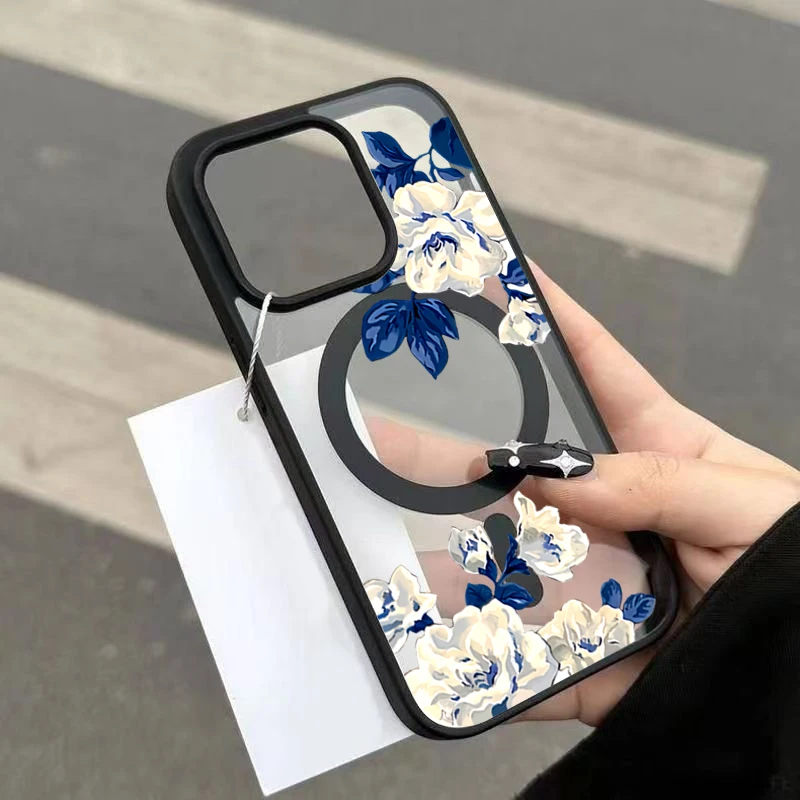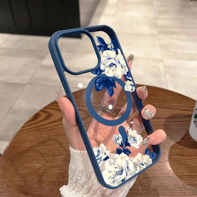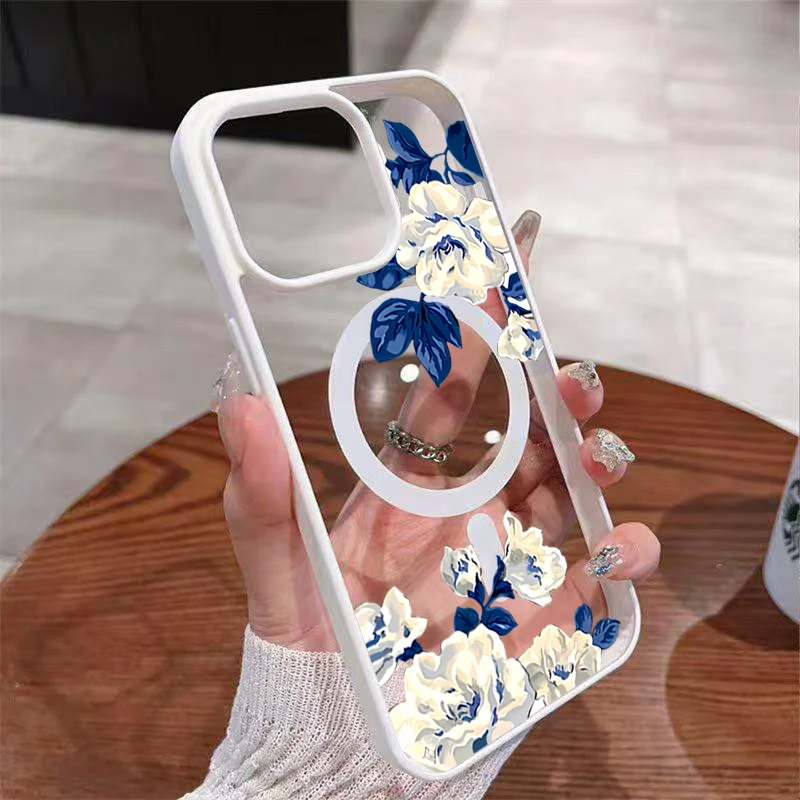 Comprar Para iPhone 17 16 15 14 13 12 Pro Max 15 16 Plus 17 Air 11 Night White Rose Pattern Macaron Funda magnética para teléfono Tramsparent