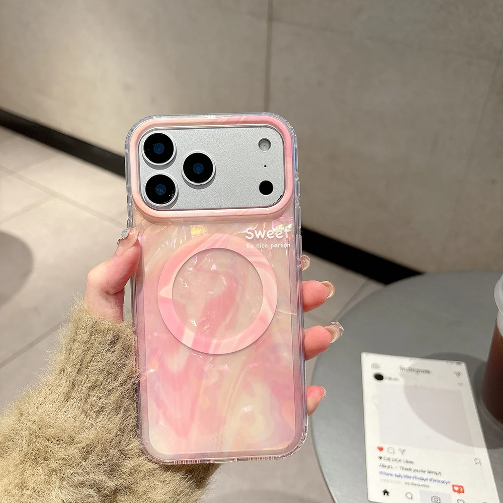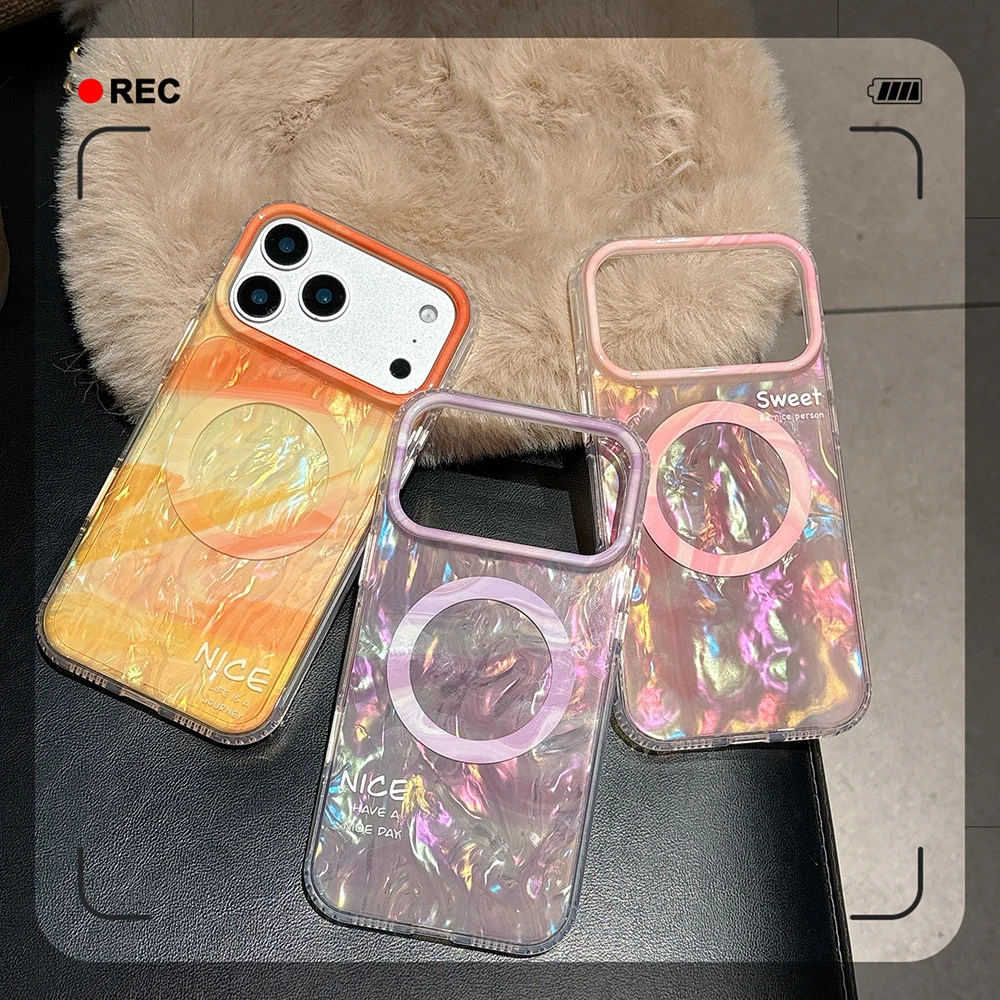 Para iphone 17 17pro 17promax patrón de carcasa degradada funda magnética de carga inalámbrica para iPhone 14 15 16 Pro Max funda para MagSafe