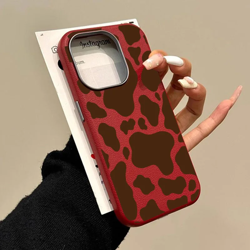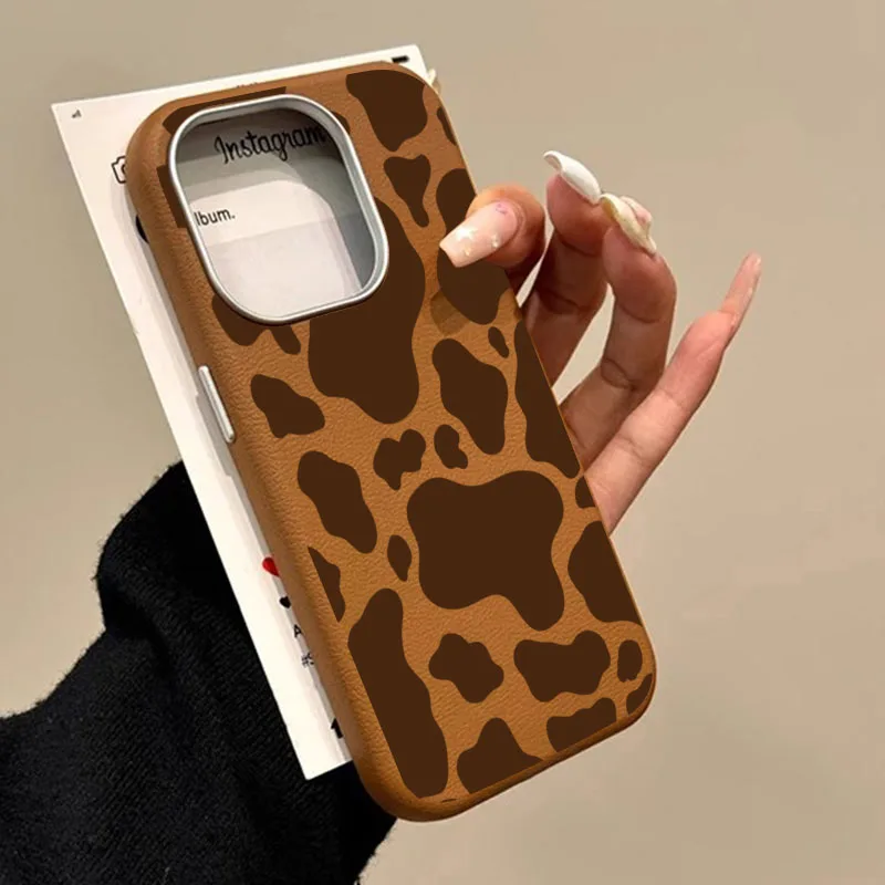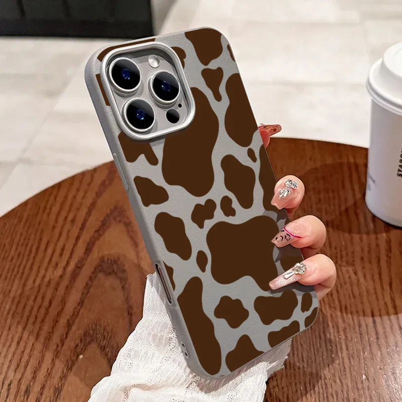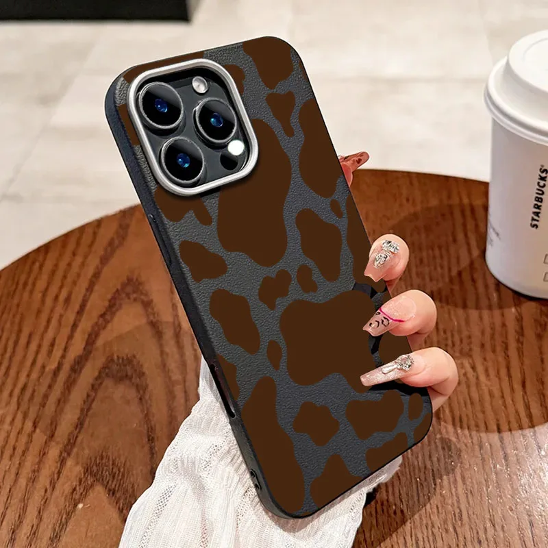 Para iPhone 17 funda de teléfono con estampado de vaca marrón patrón de lichi para iPhone 17 16 Pro Max 15 14 13 12 11 XS Max X XR 17 Air Cover