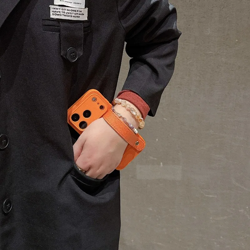 Para Iphone 17 Pro Max Air soporte de cuero correa de muñeca funda para IPhone17 16 15 14 13 12 11 Pro Max Plus funda con soporte