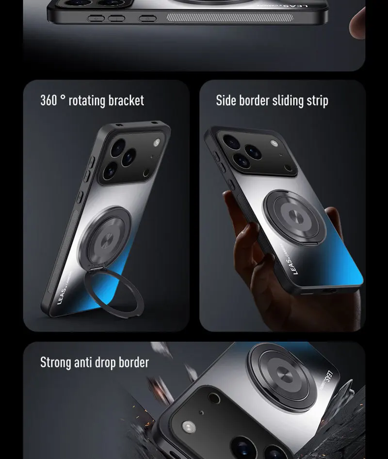 Para iphone 17 Pro max funda nueva de gama alta de cuero liso 360 soporte giratorio cubierta anticaída para iphone 17 Air 16e parachoques a prueba de golpes