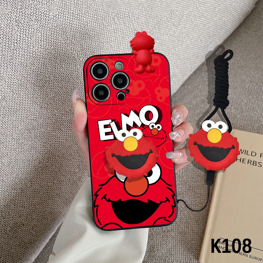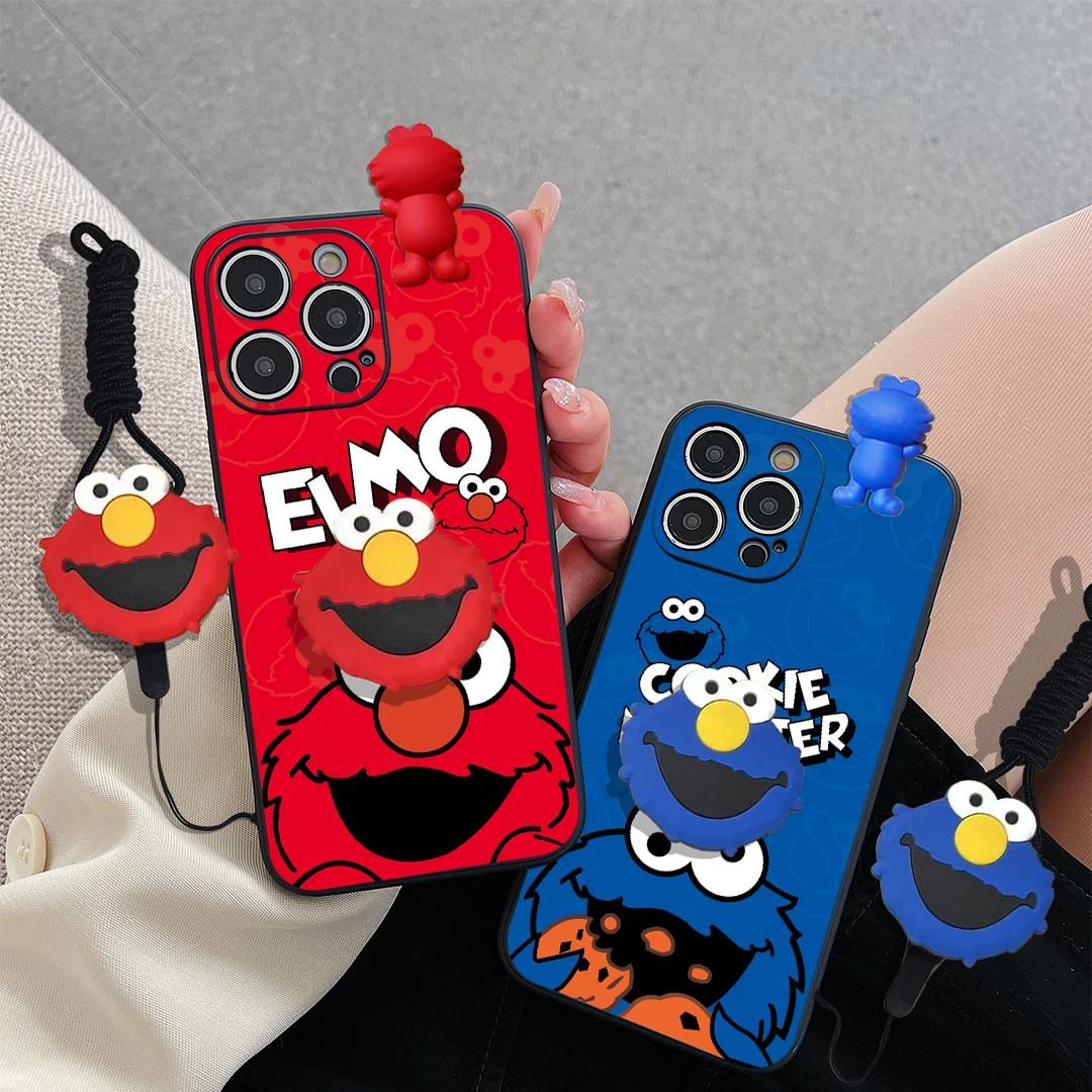 Para iPhone 6 6s 7 8 SE XR Xs 16 15 14 13 12 11 Pro Max mini Plus e Funda ELMO Azul Rojo Con Cuerda De Soporte