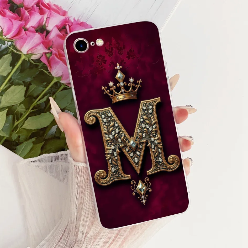 For iPhone 7 Plus Case Cute Initial Letters Soft Transparent Silicone Back Cover For iPhone 7 8 Plus Funda iPhone SE 2020 Bumper