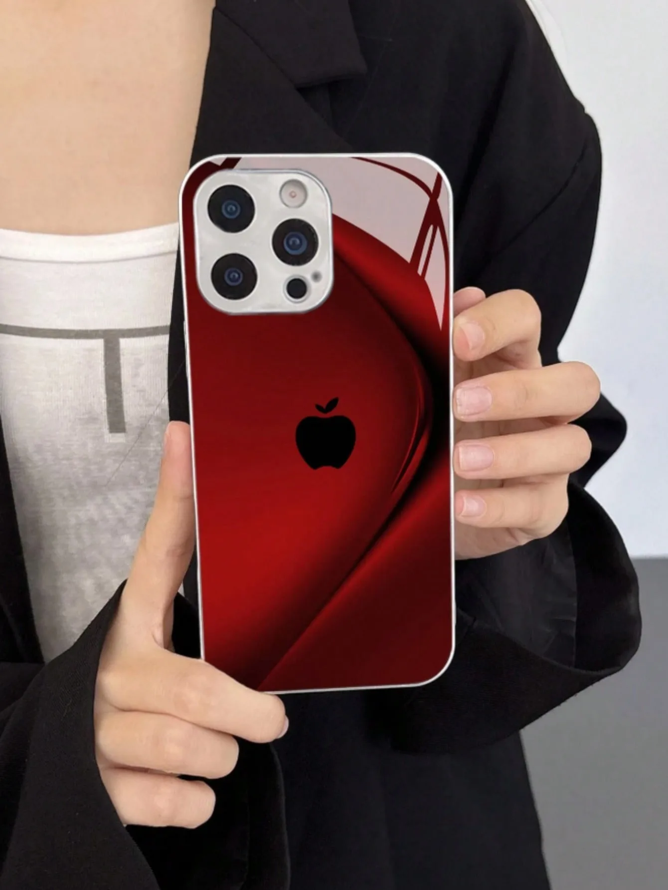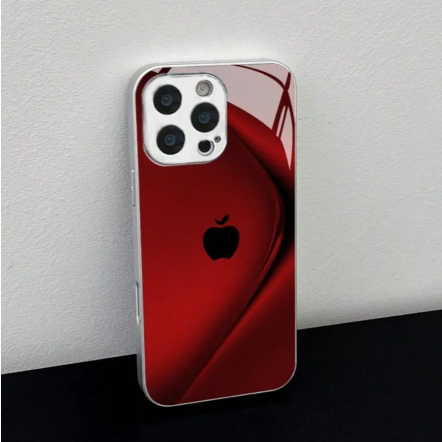 Para iPhone Funda para X/XS /XS MAX/XR / 11/12/13/14/15/16/17 Pro MAX Chapado en plata Diseño de vidrio templado "mela roja"