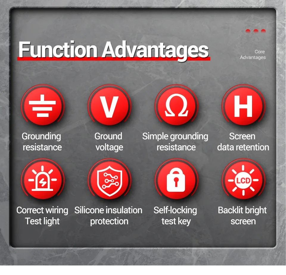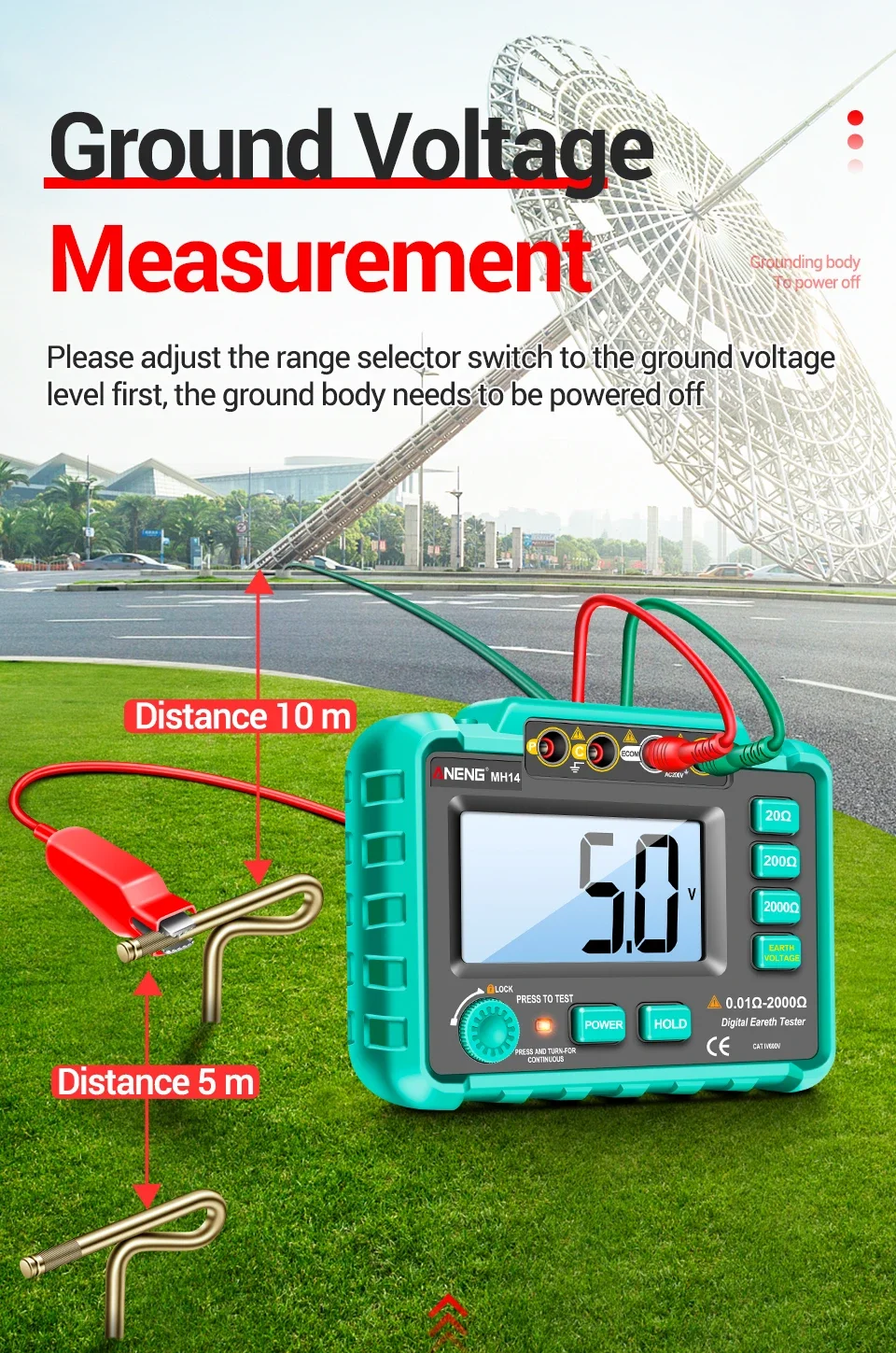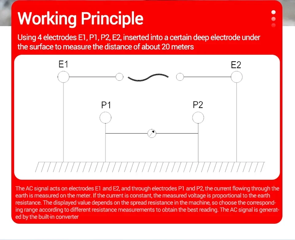 The grounding resistance tester is a professional instrument for testing the grounding resistance of electrical equipment.It improves the circuit,structure and process of the traditional grounding resistance tester,in addintion,the style is beautiful and pratical,the function is more complete,the accuracy is higher,the operation is more convenient and reliable,the dust-proof and moisture-proof structure is more suitable for feild use.It can be used for grounding resistance values of various power systems, power equipment,lighting protection equipment and other grounding systems,as well as AC voltage.