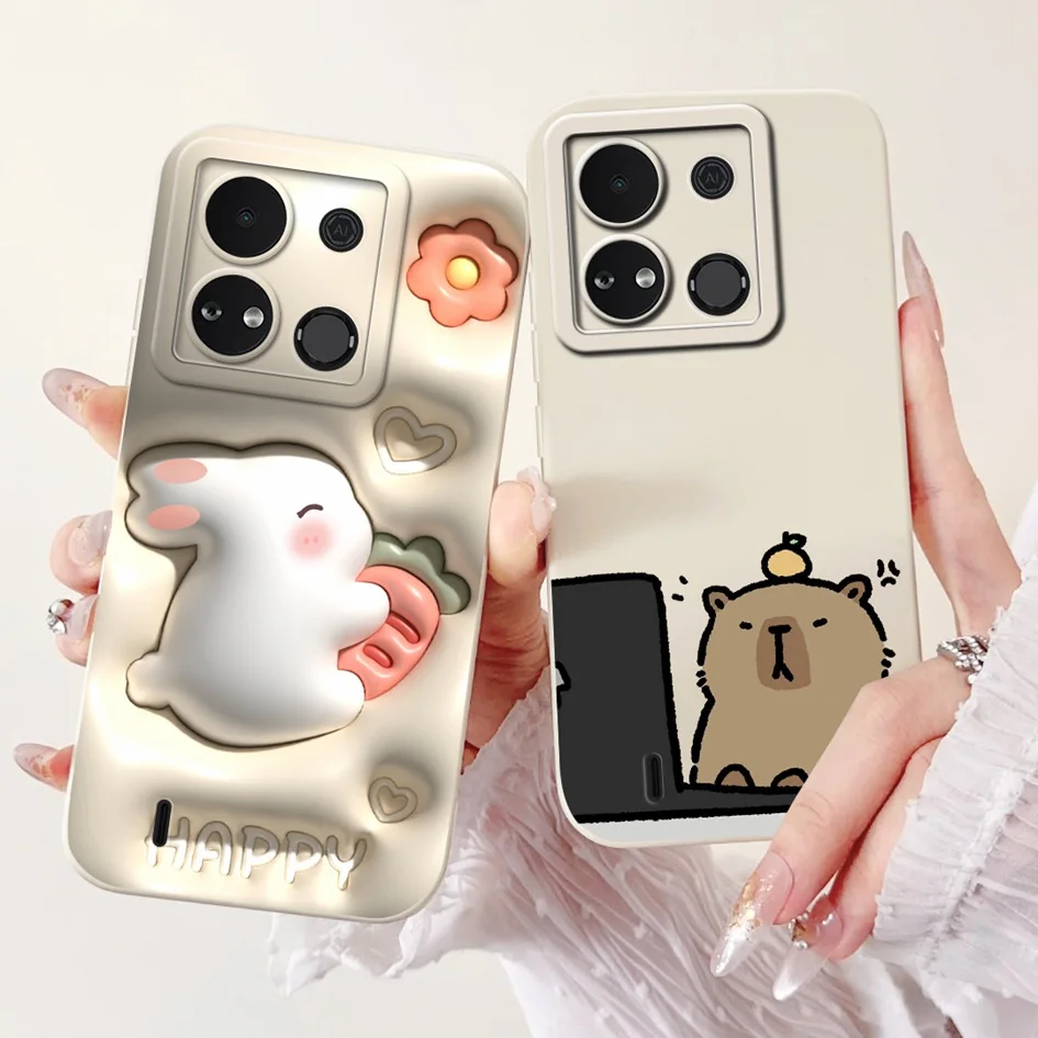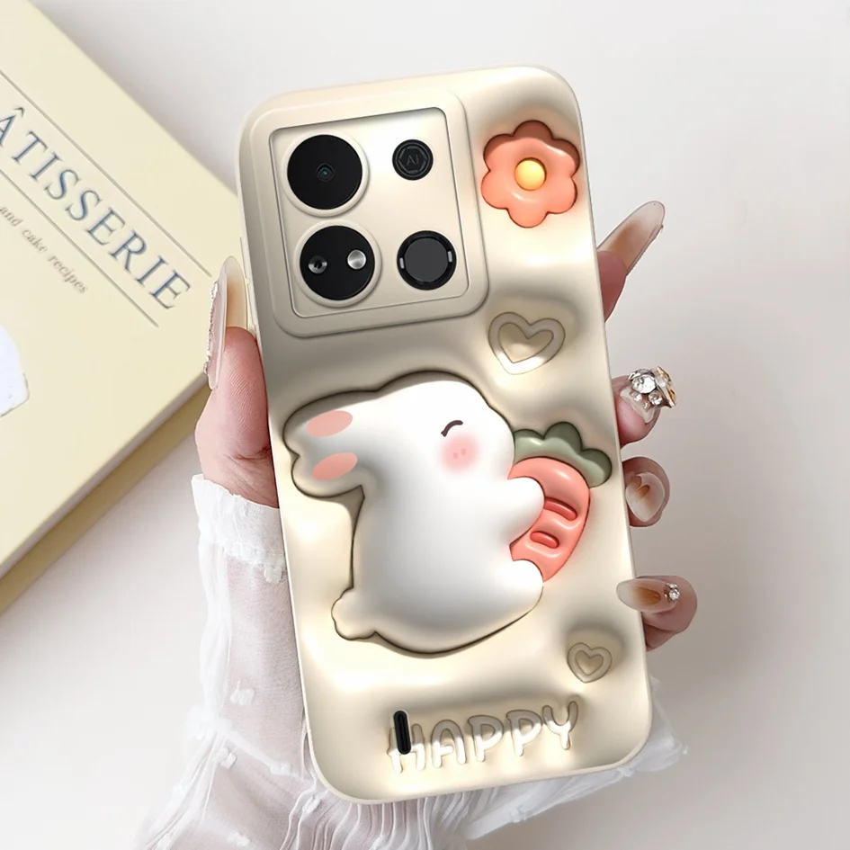 Para ITEL A04 funda bonita de dibujos animados conejo líquido silicona suave TPU goma cubierta a prueba de golpes para Itel A04 2023 A 04 funda de teléfono ItelA04