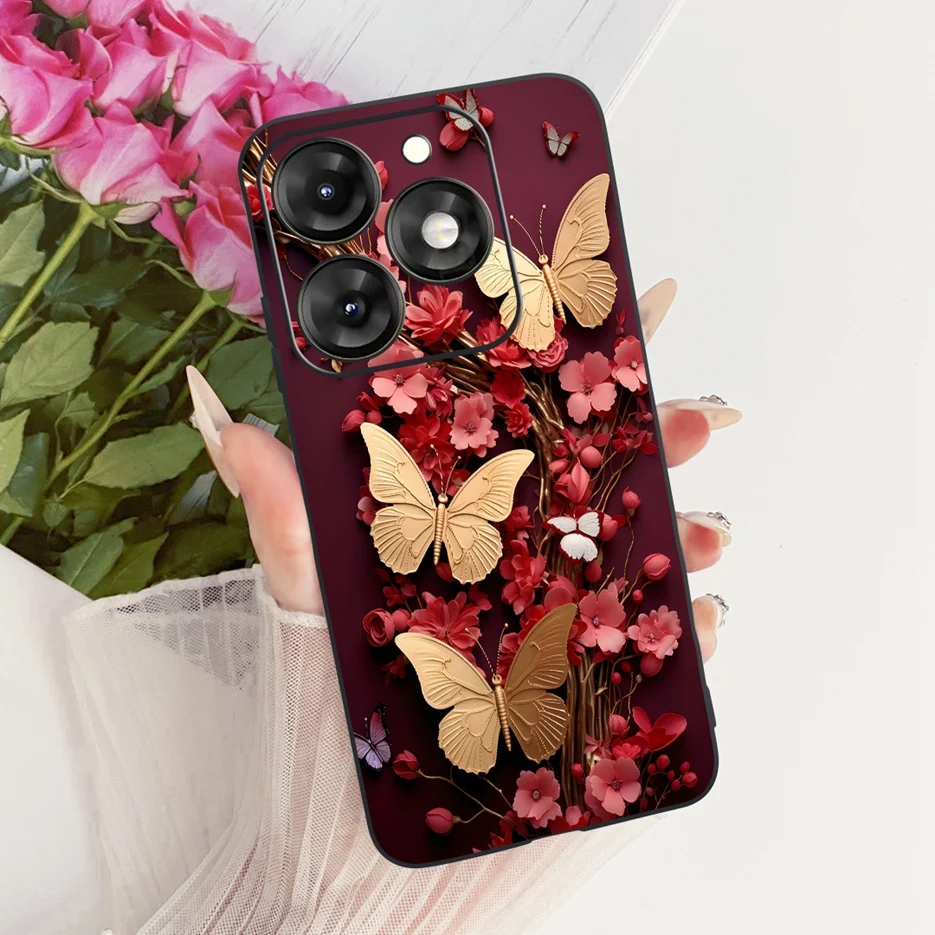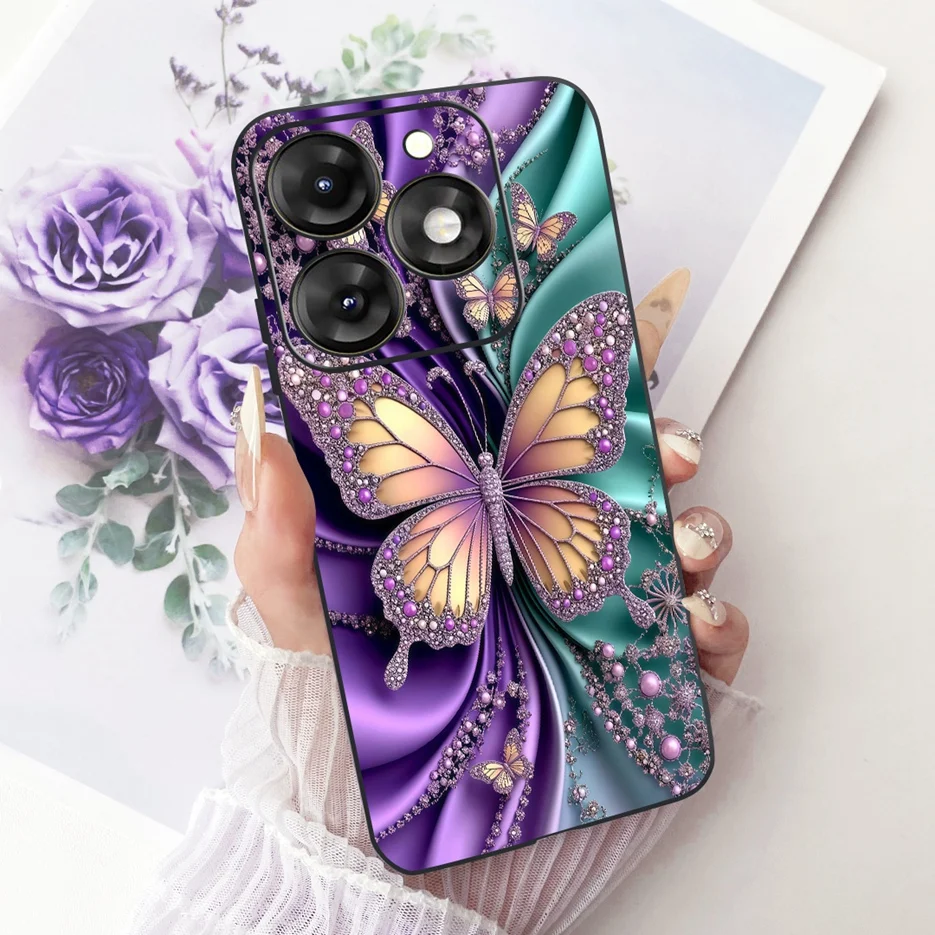 Para Itel A60 A70 funda de lujo con forma de mariposa y flor pintada funda de teléfono de TPU suave para Itel A60s A 60 70 ItelA60 ItelA70 A665L bolsas