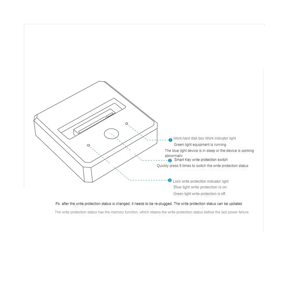 La carcasa M.2 SSD está especialmente diseñada para M Key & M + B Key NVMe PCle SSD, Compatible con unidades de estado sólido M.2 NVME de tamaño completo 2230/2242/2260/2280/22110, soporta hasta 2TB de disco duro. La estación de acoplamiento de carcasa SSD con chip controlador JMS583 garantiza una fuerte Compatibilidad y estabilidad al tiempo que admite el protocolo de aceleración UASP para proteger la seguridad de los datos. La interfaz USB 3,1 Gen 2 ofrece velocidades de lectura/escritura de datos más rápidas de hasta 10Gbps. Admite clonación sin conexión, la carcasa del disco duro no se puede conectar a ningún dispositivo durante la clonación. La clonación es una clonación individual de todo el disco, y no identificará de forma inteligente los datos en el disco duro, ¡Haga una copia de seguridad de los datos en el disco de destino antes de la clonación para evitar perder datos importantes! La carcasa M.2 NVMe permite una instalación rápida y fácil de sus SSD M.2 NMVe. Plug and play, no necesita controlador. Simplemente deslice la cubierta trasera y abra la carcasa, conecte su M Key o M + B key M.2 SSD en la ranura. Hecho de aleación de aluminio de alta calidad, tiene una mejor disipación del calor. El indicador LED le permite conocer el estado de funcionamiento fácilmente. La carcasa M.2 NVMe SSD admite protección contra escritura. Después de encender el interruptor de protección contra escritura, no se pueden poner archivos en el disco duro para evitar que el disco duro sea invadido por caballos de Troya; el contenido de los archivos en el disco duro no se puede guardar después de ser modificado para evitar que el contenido se modifique por error; Los archivos del disco duro no se pueden eliminar para evitar que los archivos sean pirateados. Eliminados por error o maliciosamente. Modelo: M.2 NVME Capacidad de soporte de protocolo: M.2 Single Disk Admite 2TB máx. Soporte de disco duro: Compatible con protocolo M.2 NVME, 2230/2242/2260/2280/22110 y otros tamaños de unidades de estado sólido Interfaz de transmisión: Tipo-C Velocidad de transmisión: 10Gbps Color: Gris Material: aleación de aluminio Tamaño: 4,4X4,4X1,1 cm Contenido del paquete: