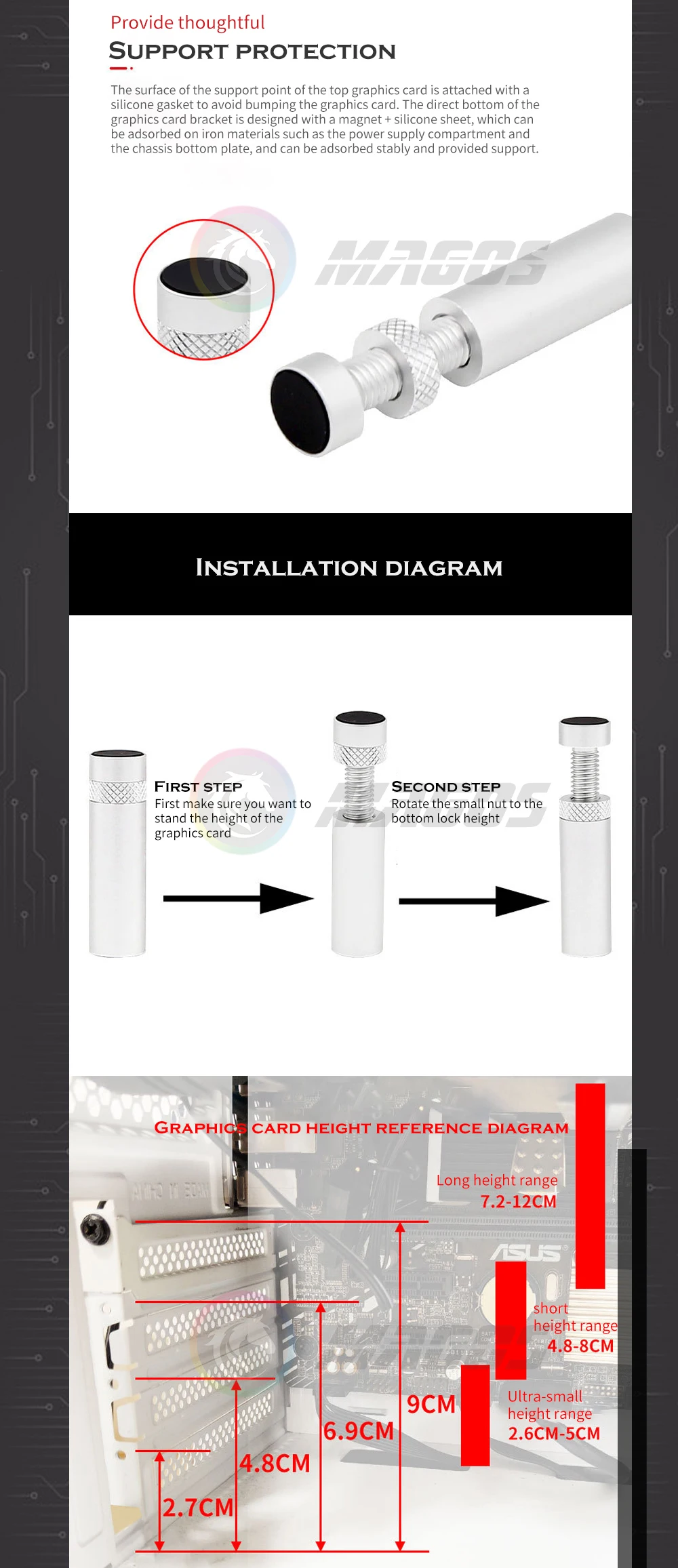 Comprar ITX-caja pequeña para GPU, soporte Anti-flexión, marco de soporte Jack, totalmente de aluminio, base magnética de Metal