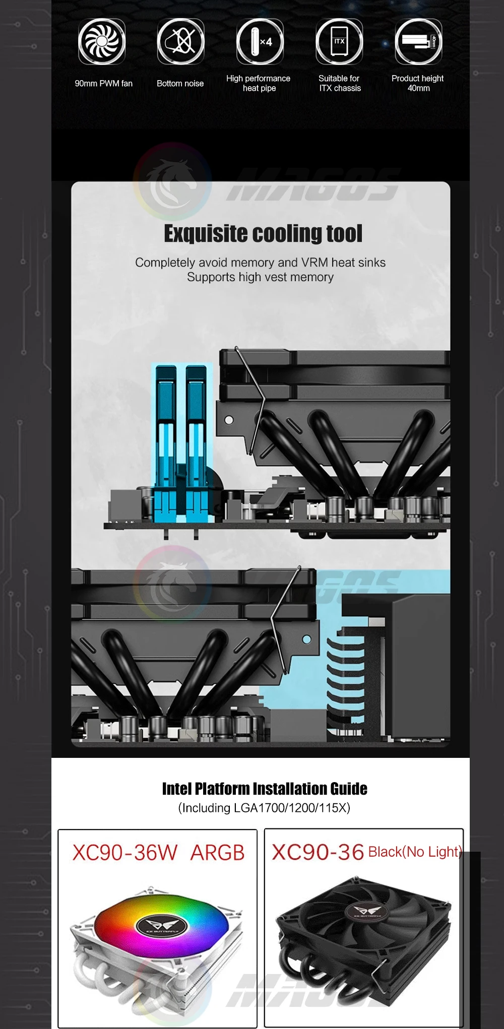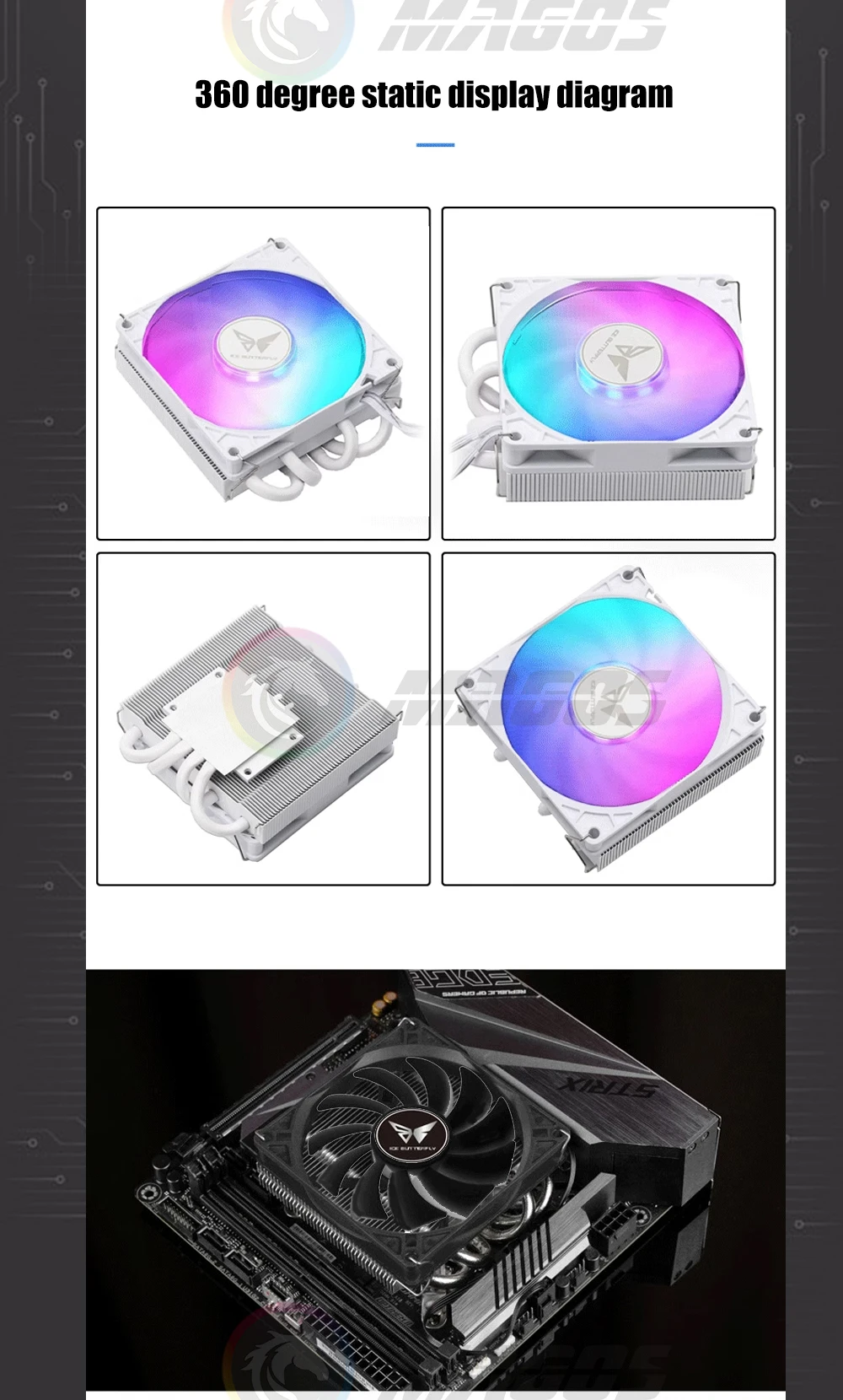 Comprar ITX-enfriador de CPU Pro, ventilador de 90mm, radiador blanco delgado de perfil bajo, 39mm de alto, 4 tubos de calor, refrigeración de aire, disipador térmico, 1700, 1200, 115X, 5V, ARGB