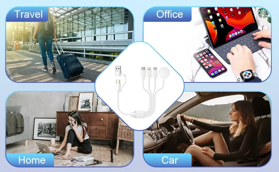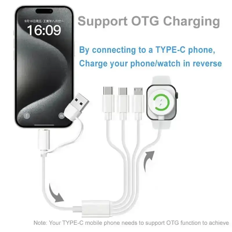 3.Diseño de 2 a 4: carga doble, puede cargar reloj y teléfono móvil (o dispositivo tipo C) al mismo tiempo, admite carga rápida del teléfono móvil; admite carga del controlador Sony PS5, Switch, teléfono móvil, auriculares compatibles, etc.