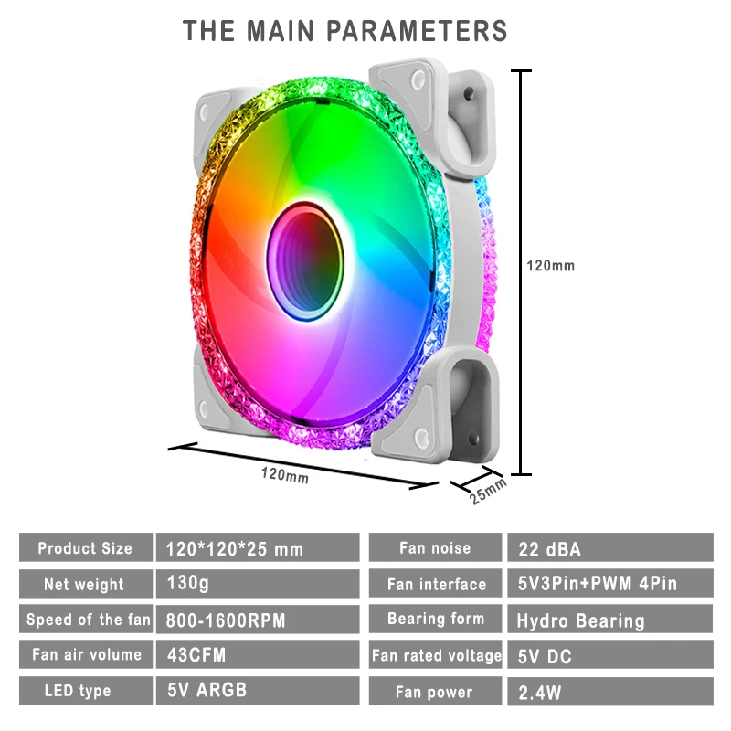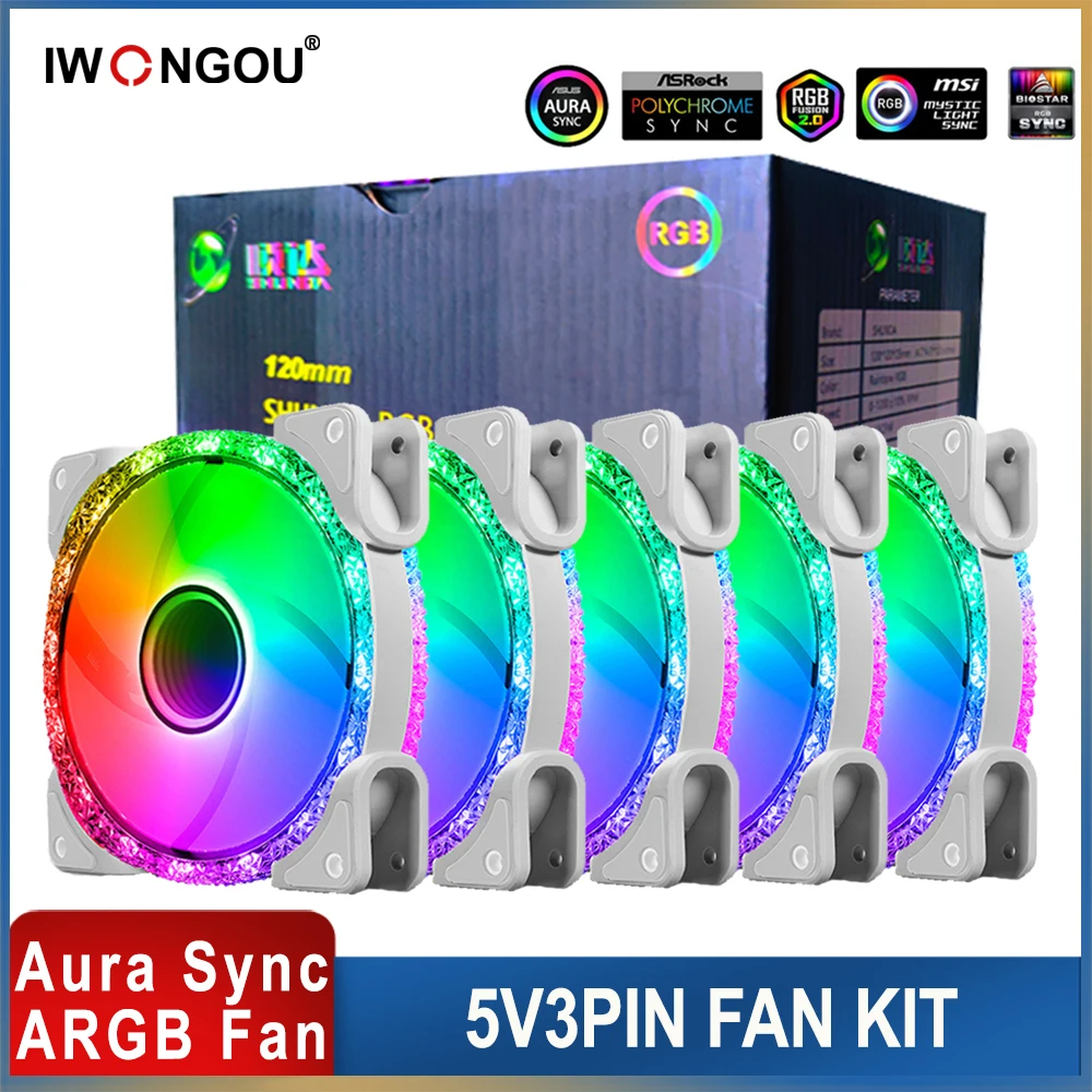 Comprar IWONGO-Ventilador de Pc Ar12pro, Kit de ventiladores Argb, 12cm, enfriadores de carcasa, 4 pines, 3pin5v, 120mm, espacio ilimitado
