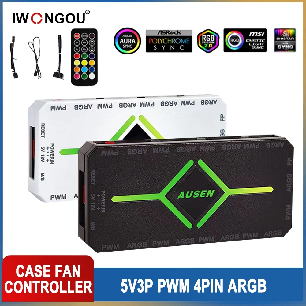 IWONGOU-controlador PWM ARGB de 4 pines, 5V, 3 pines, RGB, ventilador, PC, Control remoto, enfriador para caja de PC, regulador Universal de computadora
