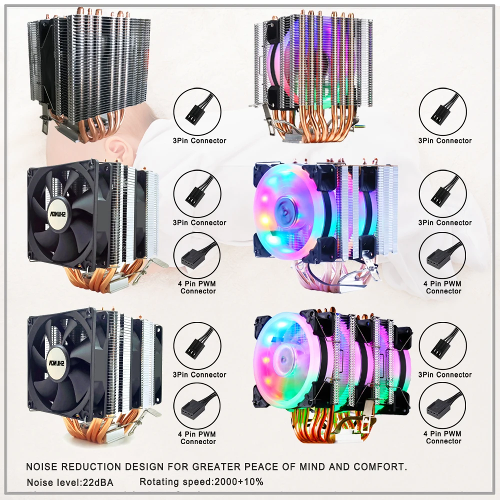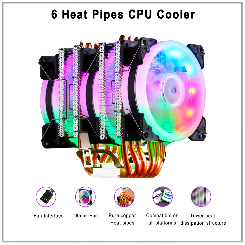 Comprar IWONGOU-disipador de cpu am4 4 pines para Cpu, 6 tubos de calor, ventilador rgb de refrigeración, radiador para Intel LGA-1700/1200/2011/115x/AMD
