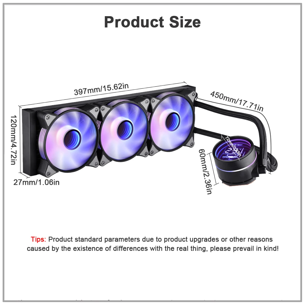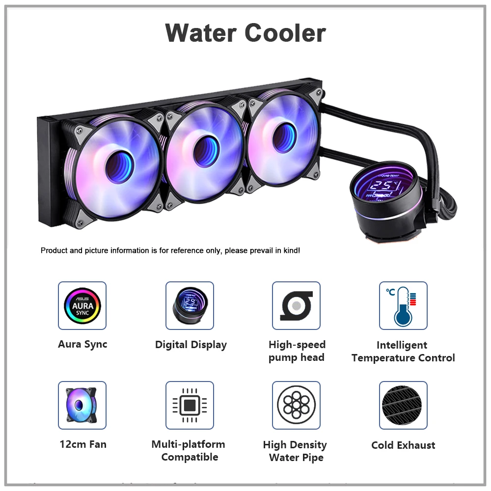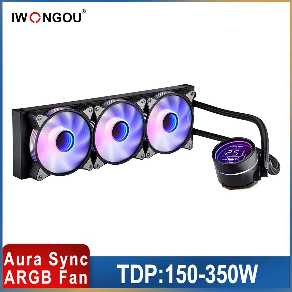Comprar IWONGOU-enfriador de agua con pantalla de temperatura, Ventilador RGB de 360mm, am4, 4 pines, 120mm, PC, para Intel 2011/1366/1700/AMD