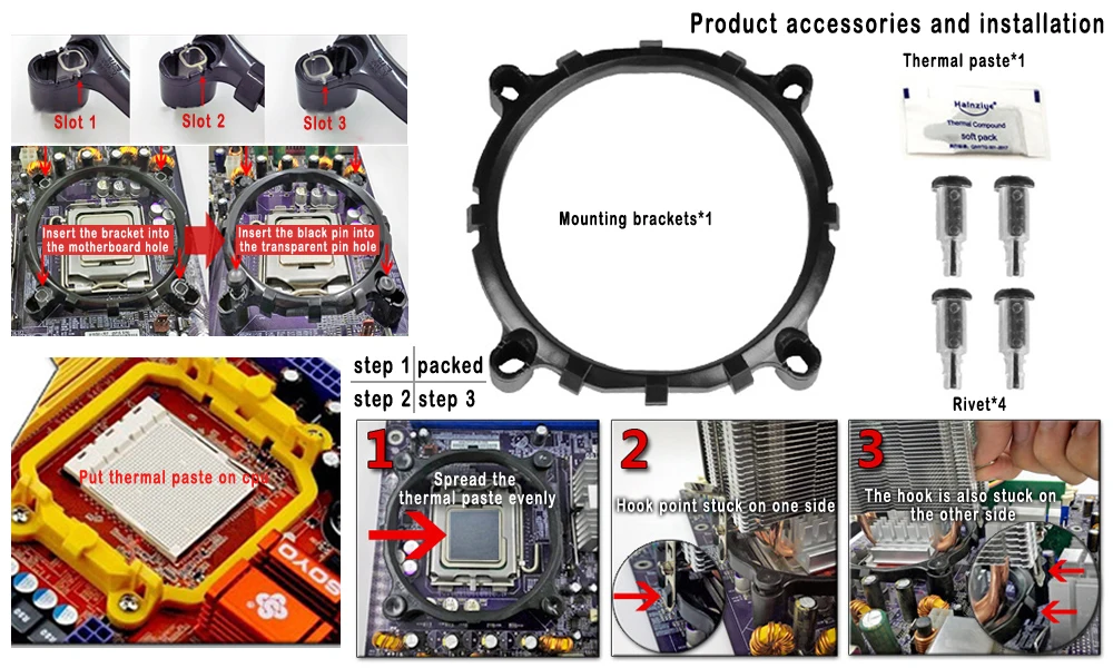 Paso 1: Fije el soporte sobre la cpu con clavos de plástico;