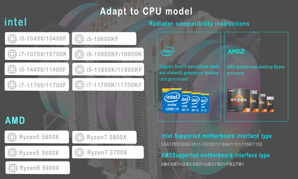 Para el enfriador de cpu LGA1200/2066/2011-V3/2011/1366/1151/1150/1155