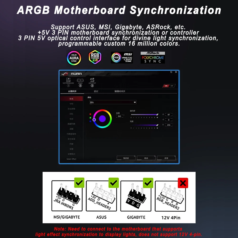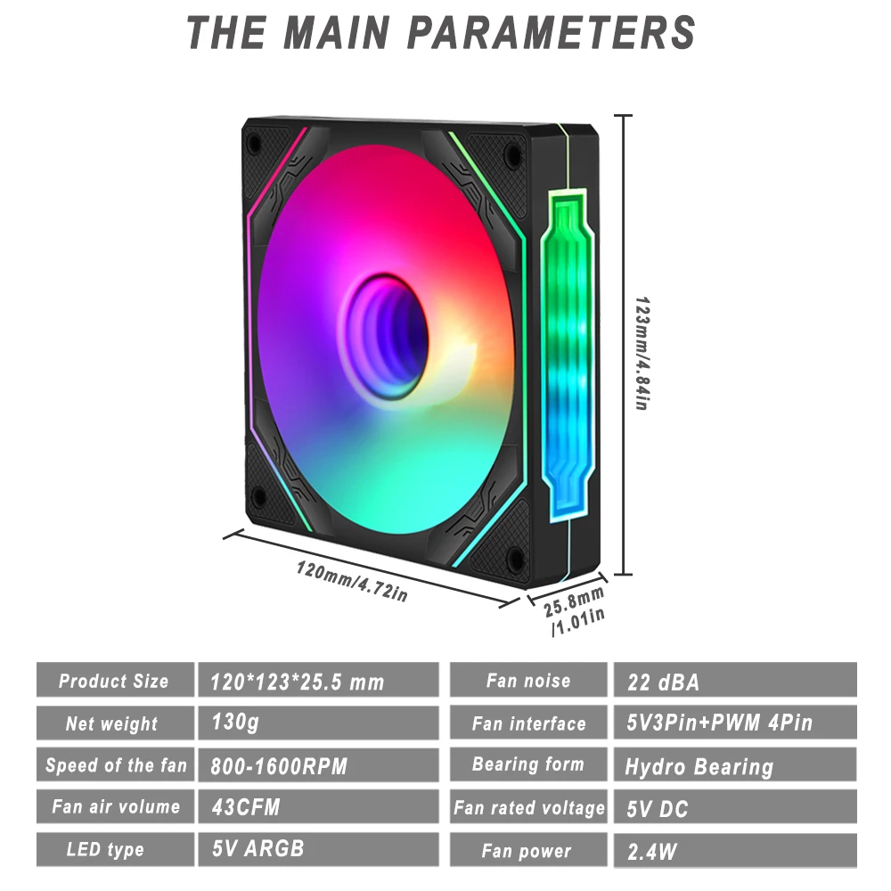 Comprar IWONGOU-ventilador Ar12pro de 120mm con controlador ARGB, enfriador Aura Sync para carcasa de PC, 4 pines, Pwm, negro, refrigeración de PC con espacio ilimitado