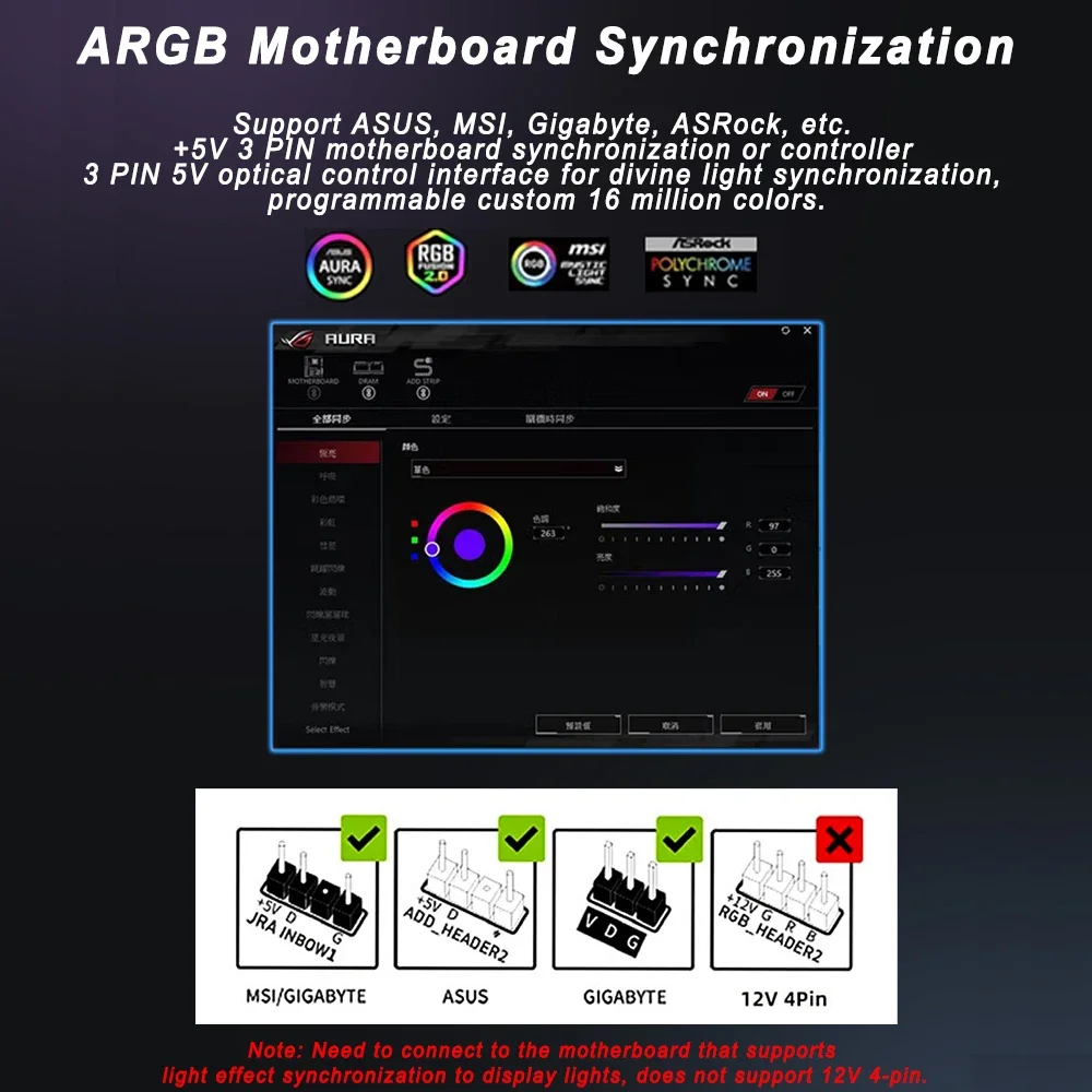 Comprar IWONGOU-ventilador Ar12pro de 120mm con controlador ARGB, enfriador Aura Sync para carcasa de PC, 4 pines, Pwm, negro, refrigeración de PC con espacio ilimitado