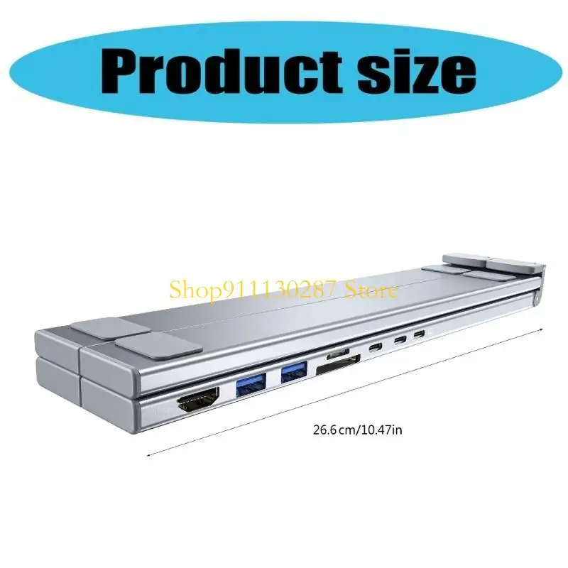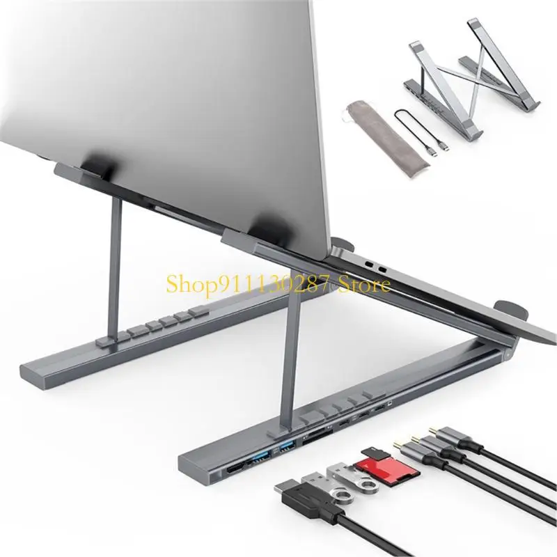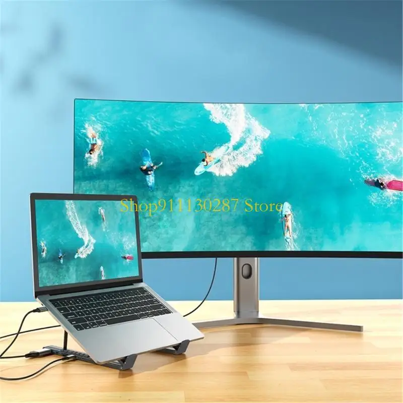 Hecho de aleación de aluminio, este soporte ofrece múltiples puertos que incluyen 4K, USB3.0, ranuras para tarjetas SDTF y USB C, y admite salida de video de hasta 4K y carga rápida PD100W.