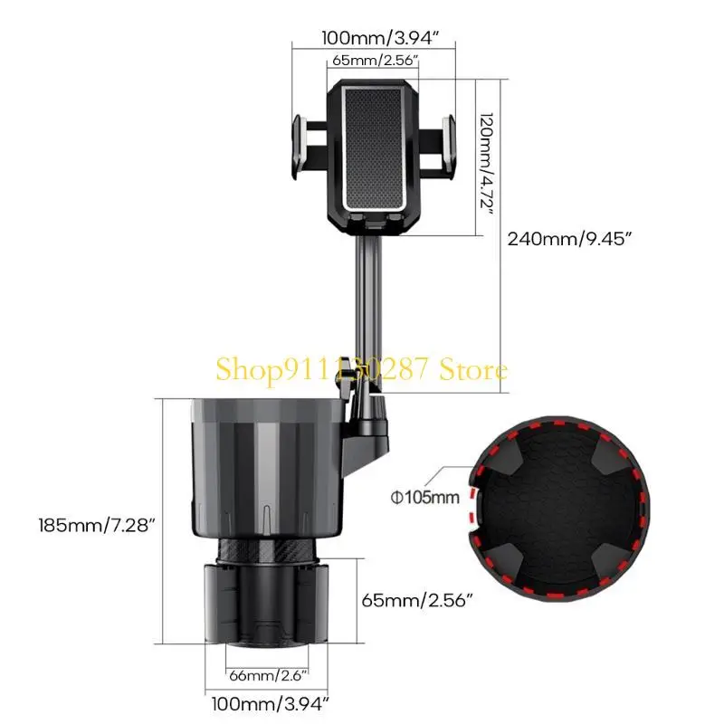 Características:Mantenga sus teléfonos seguros y al alcance mientras conduce con nuestro soporte para teléfono con portavasos para automóvil.Su base ajustable y 360°La rotación permite una fácil visualización desde cualquier ángulo.